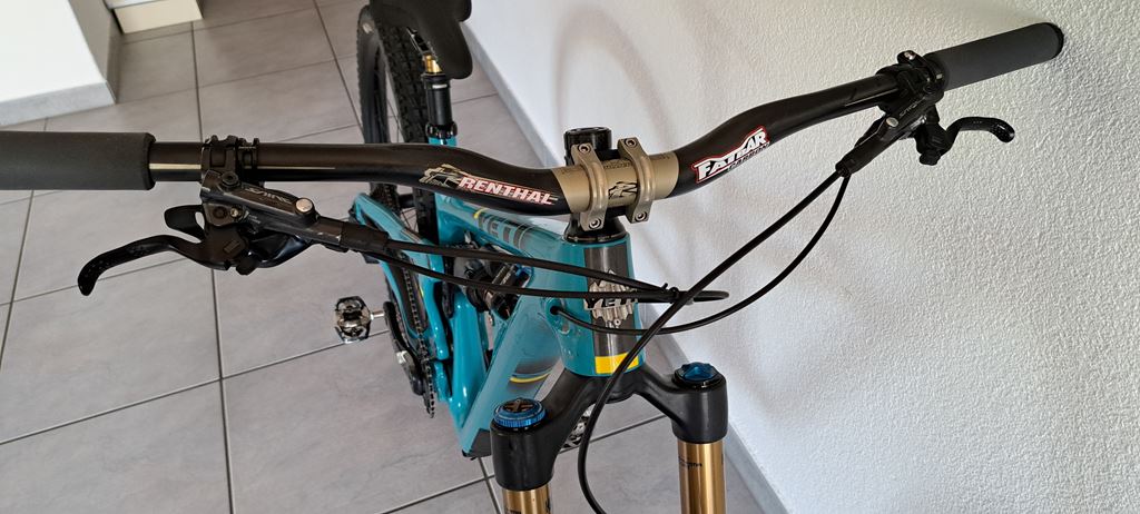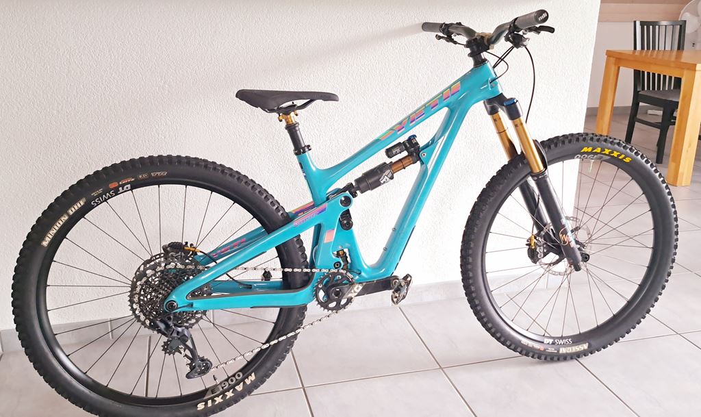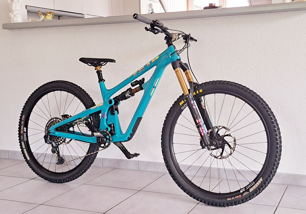 - Schönes Yeti in super Zustand zu Verkaufen. Leider kann ich das schöne Teil nicht mehr fahren da ich im Rollstuhl bin. Besichtigung und Probefahrt in Kleindöttingen (Böttstein) möglich. Parts: Fox Kashima Farwerk Saint Bremsen Technische Daten: Laufradstandard: 12 x 148 mm (Boost) Achsstandard: 12 mm E-Thru Steckachse Sattelstütze (Ø): 31,6 mm Sattelklemme (Ø): 36,4 mm Steuersatz: IS41 - IS52 (oben zu unten) Gabelschaft empf.: 1 1/8" - 1,5" tapered Gabeleinbaulänge empf.: 577,1 mm Gabelfederweg empf.: 170 mm Innenlagerstandard: PF92 Gehäusebreite: 92 mm Kettenführung: ISCG 05 Bremsaufnahme: Disc PM7 (direct mount 180 mm) Dämpfereinbaulänge: 230 mm Dämpferhub: 60 mm Flaschenhalteraufnahmen: 1 Freigaben: Bremsscheibengröße max.: 203 mm Reifengröße max.: 29 x 2,5" Kettenblattanzahl: 1-fach Kettenblattgröße max.: 1-fach 34 Zähne (rund), 1-fach 32 Zähne (oval) Features: bewährt in EWS und weiteren Wettkämpfen eher lineare Federkurve rennorientierte Geometrie für schnelle, laufruhige Abfahrten hochwertiges, extrem leichtes und langlebiges TURQ-Carbon mit ausgewogenem Verhältnis von Steifigkeit und Nachgiebigkeit Fox Float X2 Factory Dämpfer mit angepasstem Tune komplett innenverlegte Zugführung patentierte Switch Infinity Link Technologie mit Rahmenschutz am Unterrohr und an der Kettenstrebe Technologie: Switch Infinity Link Technologie Am Anfang des Federwegs verschiebt sich der Drehpunkt nach oben, damit der Hinterbau auch den gröbsten Hindernissen auf dem Trail ausweichen kann. Der dadurch gewonnene Radstand wirkt den Antriebseinflüssen entgegen und lässt Dein Bike förmlich den Hang hinauffliegen. Befindet sich das Bike jedoch weiter unten im Federweg, senkt sich der Switch Infinity Link wieder ab und vermittelt Dir ein Gefühl von endlosem Federweg, mit dem Du jeden Trail bezwingen willst. Geometrie: (basierend auf einer Gabeleinbaulänge von 577,1 mm) M: Empfohlene Körpergröße: 165 - 180 cm Stack: 614,8 mm Reach: 460,2 mm Sitzrohrlänge: 410,0 mm Effektive Oberrohrlänge: 602,4 mm Steuerrohrlänge: 96,6 mm Kettenstrebenlänge: 433,0 mm Radstand: 1223,2 mm Tretlagerhöhe: 347,8 mm Sitzwinkel: 77,0° Lenkwinkel: 64,5° Überstandshöhe: 727,8 mm
