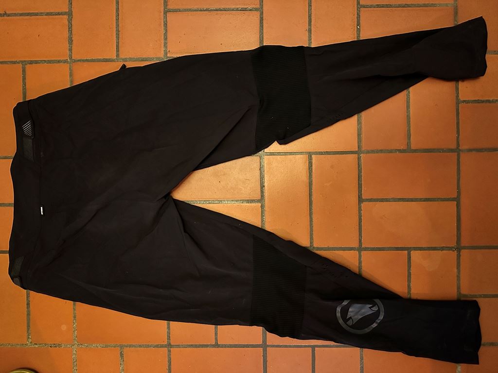 - Lange, dünne und auch bei wärmeren Temperaturen angenehme Bikehose. Logo hat sich an einer Stelle teilweise gelöst und ein paar kleinere, dem Einsatz entsprechende Flecken. Sonst gut in Schuss. Eine Saison sporadisch getragen, ist mir leider etwas zu gross.