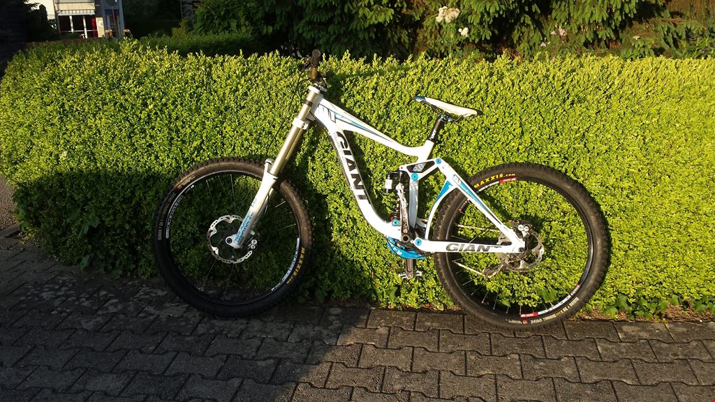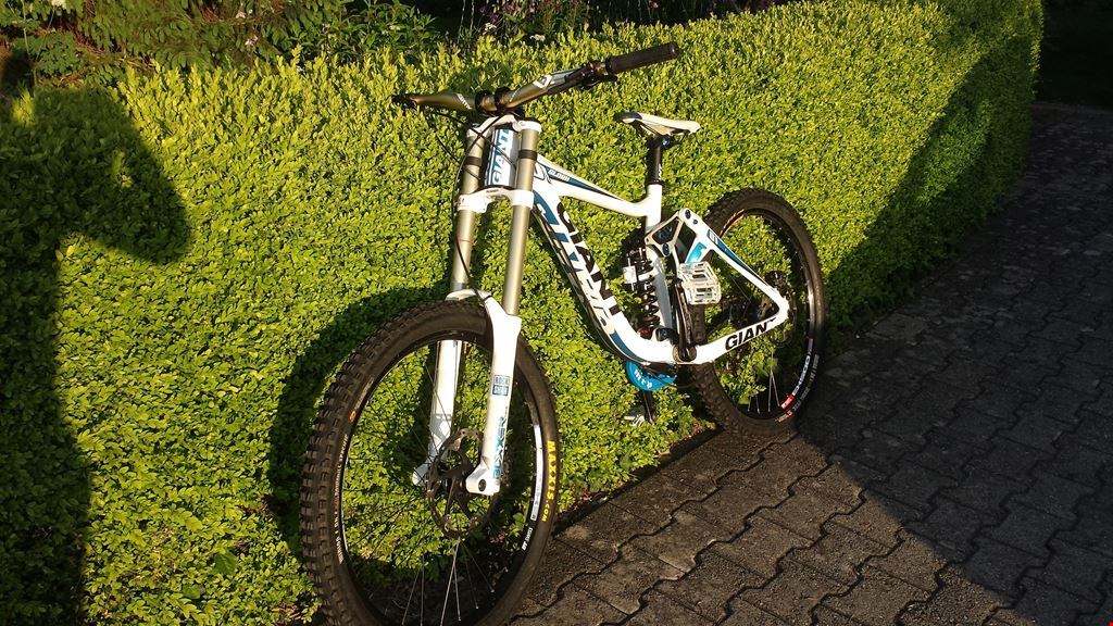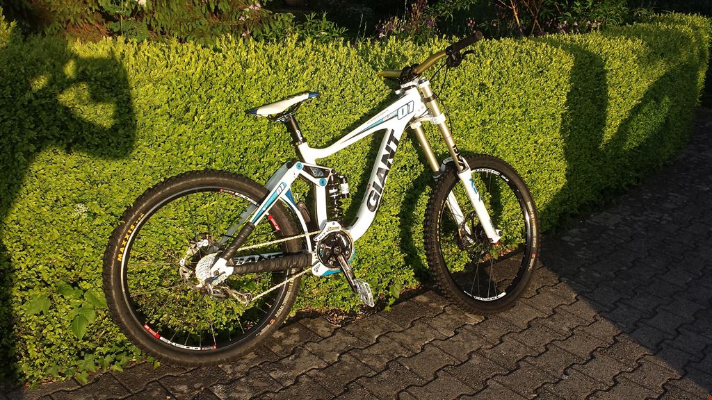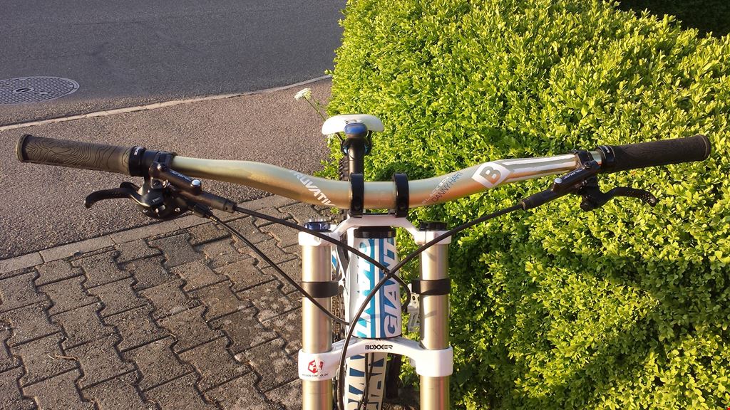Shimano Saint Bremse Wellgo B 164 weiss Works Components 1.5 Grad Steuersatz Truvativ Danny Hart Blackbox Lenker Race Face Half Nelson Griffe Acor light Titanium Kette gold