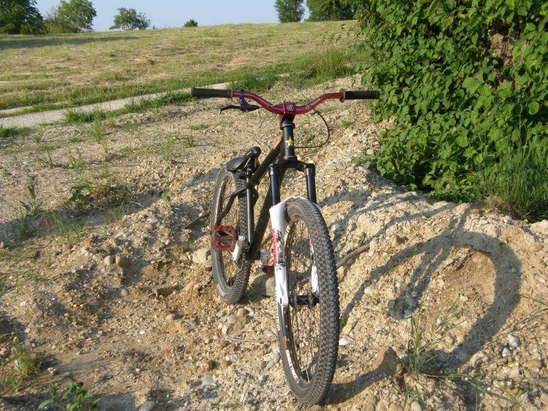 Rahmen: Nope Janis Gabel: marzocchi DJ 1 QR20 Kurbeln:UMF Lenker/Vorbau:Fun Works VR: Nope Fun Works 2Way DH / Bitch Whippa HR: Nope Fun Works 2Way DH / Bitch Whippa Bremse: Avid BB5