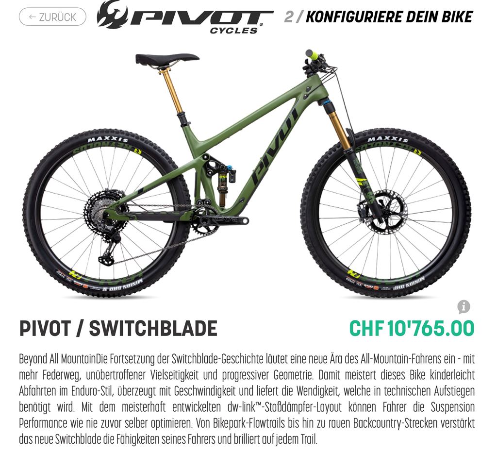 Das Switchblade gehört zu den begehrtesten Enduros auf dem Markt. Der Grund: Eine stimmige Geometrie und ein erstklassiger Hinterbau garantieren Fahrspaß auch im groben Gelände. Den Trend zu immer laufruhigeren Geometrien geht Pivot nicht voll mit. Gut so, denn mit dem ausgewogenem Fahrverhalten ist man für sämtliche Situationen auf dem Singletrail gerüstet. Die Sitzposition schafft es weder zu sportlich, noch zu aufrecht auszufallen. Ihr moderater Charakter dürfte den allermeisten Bikern zusprechen. Der hochwertige Carbon-Rahmen erfüllt alle aktuellen Standards und dient damit als perfektes Fundament für ein solides Komplettbike.