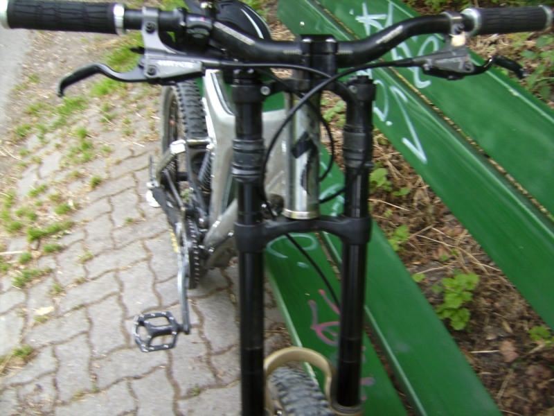 Manitou Swinger 3 Way SPV Manitou Travis Triple Ti Intrinsic 200mm (Jahrgang 07) Hayes 9 Schaltung Shimano XT Kurbel Holzfeller Laufräder Singletrack mrp Kettenführung