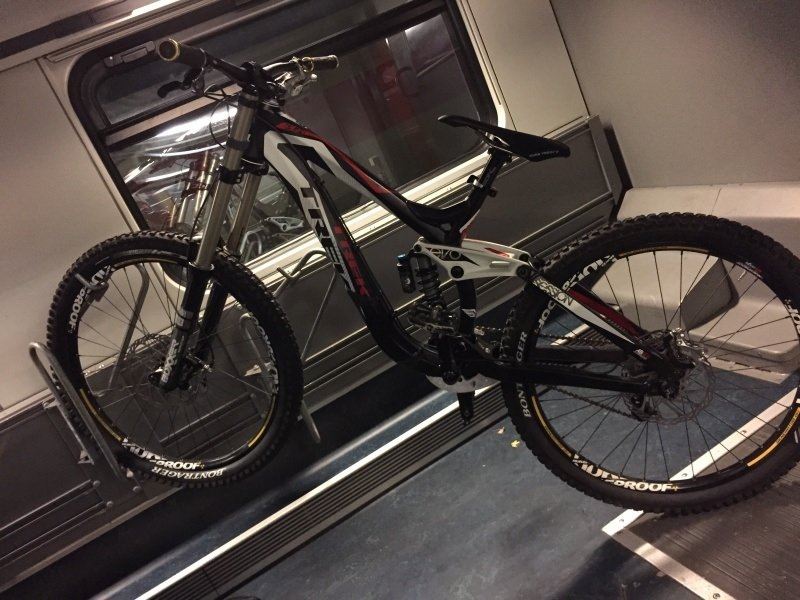 Dämpfer: Fox 4.0 Gabel: Boxxer WC 2013 Bremsen: Avide Guid RS Mantel: Bontrager Pedalen: Holzfäller Griff: Vans Waffel Vorbau: Raceface Atlas