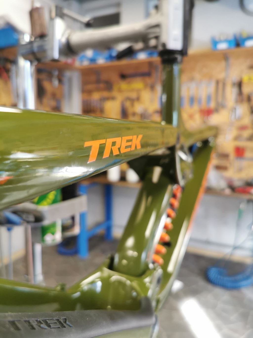 Costum Rahmen Lackierung in Olivegrün Glanz Fox Orange.
