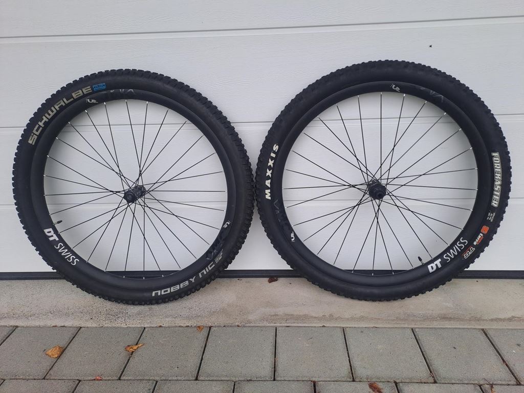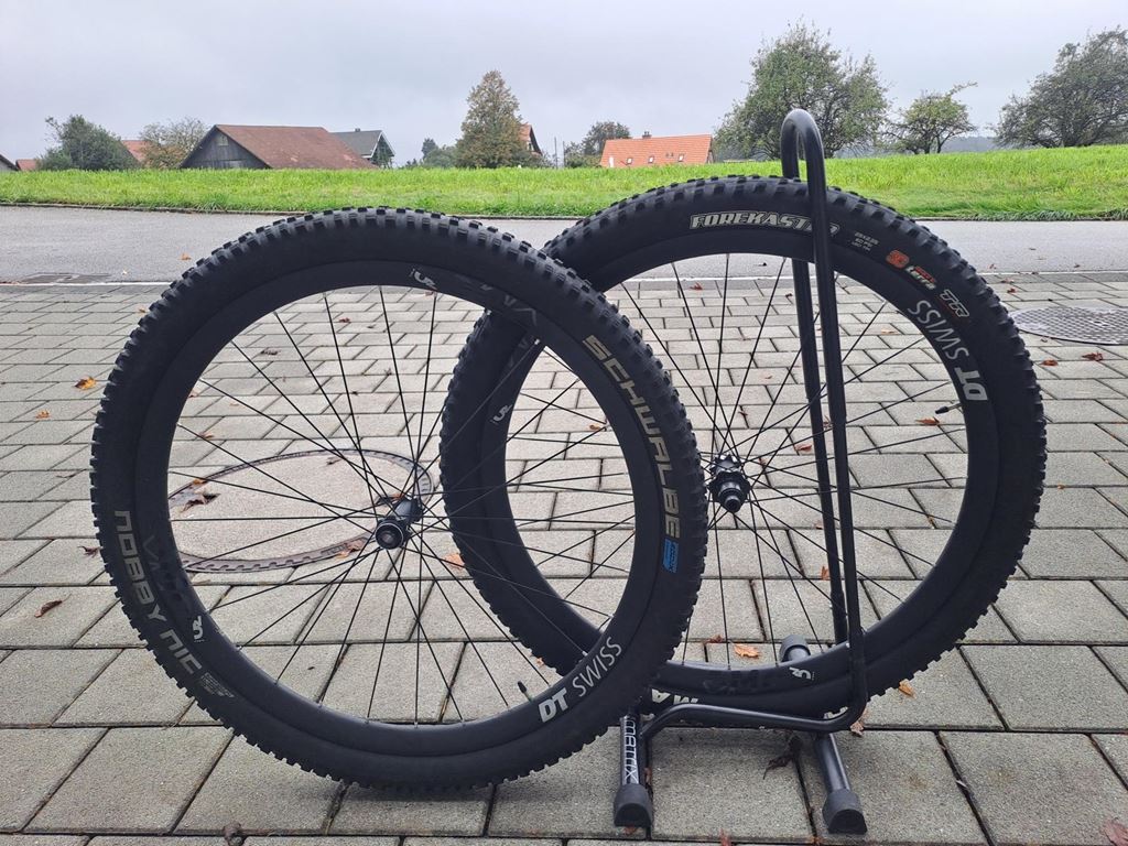 - ultraleichter 29 Zoll DT Swiss XMC 1200 Carbonlaufradsatz 29 Zoll, 30 mm Innenbreite Boost: VR 15x110 mm HR: 12x148 mm DT Swiss 240s Naben Start Ratchet Freilauf 36 t mit XD Body ausgezeichneter Zustand, kaum Gebrauchsspuren Räder laufen rund und haben keine Höhen- oder Seitenschläge, Lager laufen butterweich mit schnellen Nobby Nic Evolution und Maxxis Forekaster Pneus