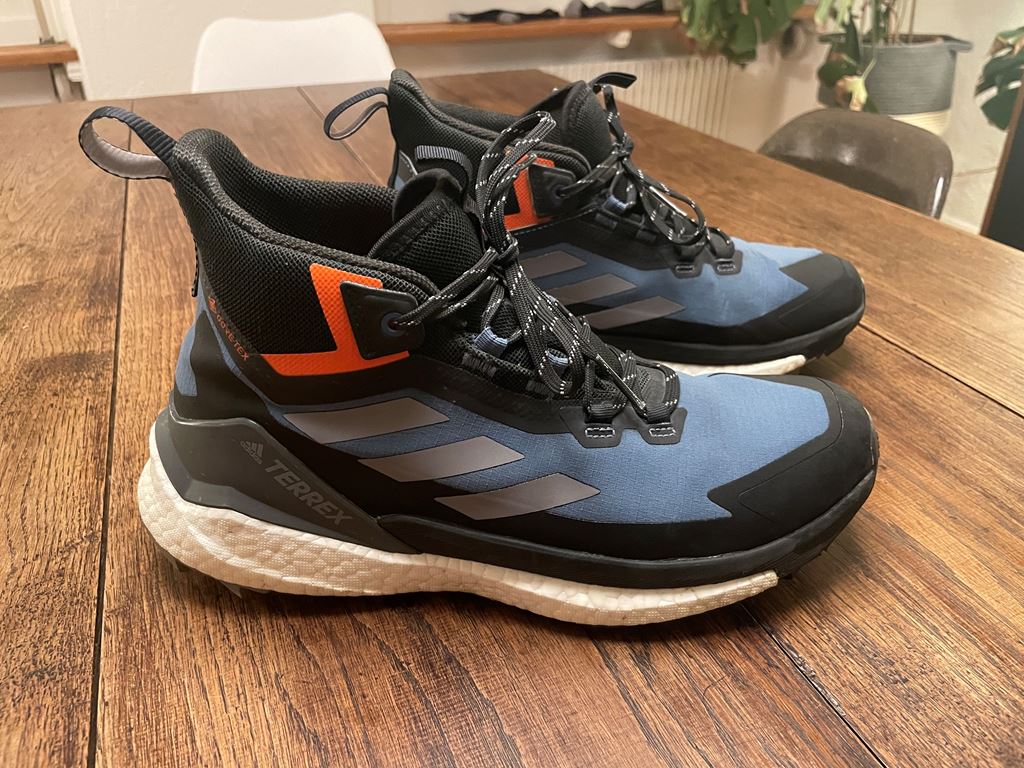 - Biete einen wasserdichten, sehr leichten und bequemen Wander-/Regenschuh an... ADIDAS TERREX FEE HIKER 2.0 GORE-TEX Modell: Free Hiker 2.0 Gore-Tex Grösse: EU 42 2/3 Farbe: Legend Blue Zustand: gebraucht, aber nach wie vor absolut wasserdicht in gutem allgemeinen Zustand / Innensohle sehr guter Zustand, da nur 2x getragen Originalpreis: CHF 249.90 Details: - Reguläre Passform - Abriebfestes Obermaterial aus Mesh; nahtlose Overlays - GORE-TEX Membran - Stabilisierender EVA-Rahmen; sichtbarer, externer Fersenclip - BOOST Zwischensohle - Gewicht: 512,5 g (Größe 42 2/3) - Außensohle aus Continental™ Gummi - Besteht zu mindestens 20 % aus recycelten und erneuerbaren Materialien Können in 8038 Zürich-Wollishofen abgeholt oder mit Paket B-Post (CHF 7) zugesendet werden. Absolut super Schuh, da super bequem, super wasserdicht, super leicht, super stylisch! Wer mit einem solchen Schuh schon mal wandern war, geht nicht mehr zurück zu einem normalen Wanderschuh! Auch ist er super für den Alltag, wenn Du z.B. mal mit dem Fahrrad bei Regen unterwegs warst. Denn was nützt Dir, wenn Du mit der Regenjacke oben trocken bleibst, Deine Füsse jedoch pflutschnass werden. Beschreibung (Text von Adidas Webseite) Dieser innovative Wanderschuh ist teilweise aus recycelten Materialien hergestellt. Was gibt es Besseres, als die Schönheit der freien Natur zu genießen? Ob Thruhiking oder Wochenendtrip – dieser leichte Wanderschuh bietet überragenden Komfort und Halt, damit dich unterwegs nichts ausbremst. Die BOOST-Zwischensohle gibt dir bei jedem Schritt Energie zurück und sorgt so für lang anhaltenden Tragekomfort. Die GORE-TEX Membran hält Nässe ab und ist gleichzeitig atmungsaktiv. Das weiche, Halt gebende Obermaterial und die mit dem Obermaterial verbundene Zunge, die das Eindringen von Steinchen und Schmutz verhindert, umschließen deinen Fuß passgenau. So genießt du ein superbequemes Tragegefühl, damit du über dich hinauswachsen und noch ein paar Kilometer mehr schaffen kannst. Durch den innen liegenden Rahmen und den stabilisierenden Fersenclip sind auch unebene und felsige Abschnitte kein Problem. Und die Außensohle aus Continental™ Gummi liefert optimalen Grip – egal, ob auf nassem oder trockenem Untergrund. Durch den Einsatz von Recyclingmaterialien können wir bereits vorhandene Gewebe und Fasern wiederverwenden und so dazu beitragen, Müll zu reduzieren. Auch erneuerbare Materialien sind ein Weg, uns weniger abhängig von nicht erneuerbaren Ressourcen zu machen. Unsere Produkte, die mit einem Mix aus recycelten und erneuerbaren Materialien hergestellt sind, bestehen zu mindestens 20 % aus diesen Materialien.