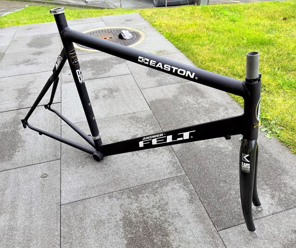 - RARITÄT! Tria-Rahmen FELT & Karbongabel KESTREL zu verkaufen - Rarität, für Sammler! - Modell Rahmen: B2 TRIATHLON, EASTON Aluminium - Modell Gabel: KESTREL EMS Composite, Carbon - Made by ANSWER for FELT, USA made by Jim Felt - EASTON Custom Rohrsatz - Jahrgang 1997!! - ungebraucht und neu - Farbe: Schwarz eloxiert / Carbon - Grösse: 58cm - für Laufradgrösse 650B - Gewicht: ca. 1000g (nur Rahmen) - für 1“ Steuersatz Kann schweizweit mit B-Post für CHF 11.50 versendet werden. Abholung in Ennetmoos / NW.