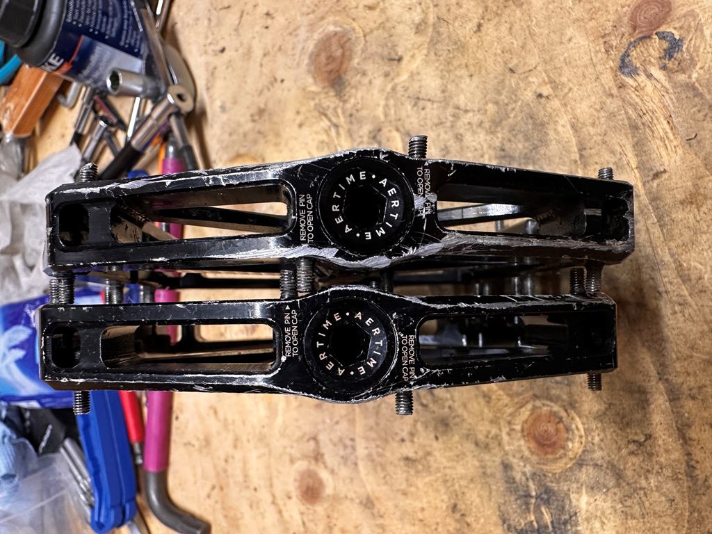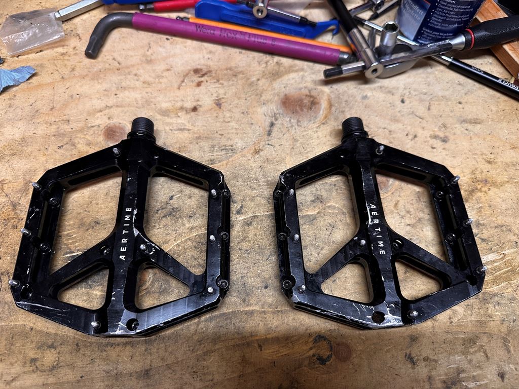 - Eine halbe Saison gefahrene Aertime Flatpedals, Grösse Large. Sind mir leider zu gross. Lager und Bushings sind neuwertig und laufen einwandfrei, Pedalkörper mit einigen Kratzern.