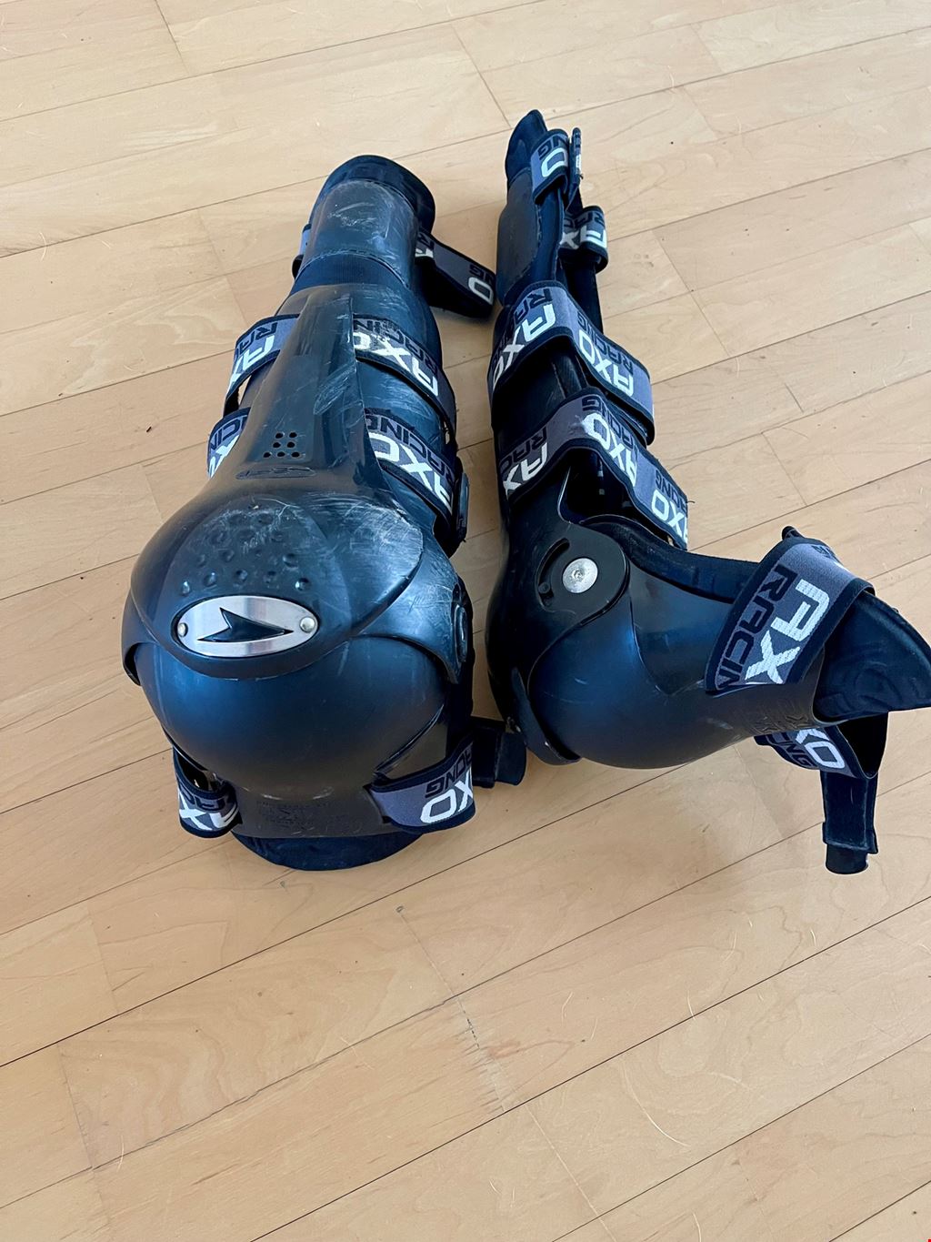 - Axo-Racing Knie- Schienbeinprotektoren Gebraucht, einige Kratzer Barzahlung bei Abholung. Versand gegen zusätzliche Gebühr auch möglich