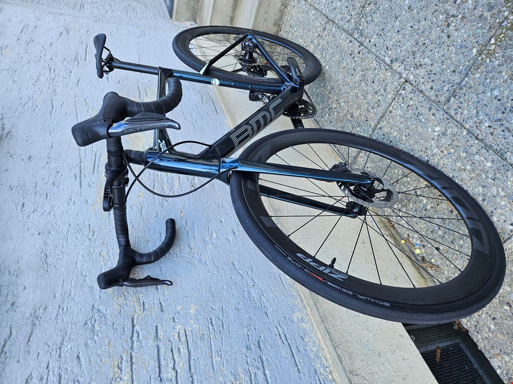 - Ich verkaufe meine Roadmachine von BMC (Modelljahr 2022), welche sowohl als komfortables Rennrad als auch als Fast-Gravel / Allroad-Bike genutzt werden kann. Das Rad wurde im Januar 2026 umfangreich umgebaut und aufgewertet (Umbaukosten Schaltung CHF 1750, Laufräder CHF 800, Reifen & Dichtmilch CHF 100) und ist technisch in Top-Zustand. Der Umbau wurde professionell von einem Veloshop durchgeführt. Die Kombination aus Carbonrahmen, elektronischer Shimano Di2 Schaltung und hochwertigen Carbonlaufrädern macht das Bike extrem vielseitig: schnell auf der Strasse, komfortabel auf langen Touren und problemlos auf Schotterwegen fahrbar. Ich verkaufe das Rad, da ich es nach dem Umbau doch nicht wie geplant nutze. Rahmen & Gabel: Premium Carbonrahmen mit Tuned Compliance Concept Endurance Carbon Gabel mit Tuned Compliance Concept Endurance Flat Mount Disc (160mm vorne und hinten) Steckachsen (12x100 / 12x142) Reifenfreiheit bis 33 mm (gemessen) Schaltung (Upgrade Januar 2026): Shimano Ultegra Di2 12-fach Brems-/Schalthebel Shimano GRX825 Di2 Schaltwerk und Umwerfer Kurbel Shimano GRX820 48/31 172.5 mm Kassette Shimano 105 11-36 Kette Shimano Ultegra 12-fach Laufräder: Zipp 303 S Carbon 45 mm Felgenhöhe Reifen: Schwalbe G-One Speed 30/622 Tubeless (Milkit) Sattel: Selle Italia, Novus Boost Evo TM Superflow 145mm breit, 245mm lang Weitere Informationen oder Fotos gebe ich auf Anfrage gerne weiter. Auch einen Termin zur Besichtigung/Probefahrt können wir gerne vereinbaren.