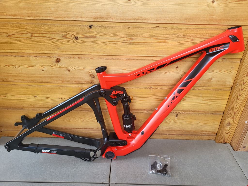 - BMC Trailfox 01 Vollcarbon-Rahmenset, enduro / all-mountain. 100% neu. Größe S (160–170 cm). 29er oder Mullet. Hinterradfederweg 150 mm. Vorderradfederweg 160 oder 170 mm. Hinterradachse 12x142. Tretlager PF92. Steuersatz : Standard / "Angleset“ möglich (-1° oder -2°). Komplettes Rahmen-Kit : Dämpfer, Achse, Sattelstützenklemme inklusive.