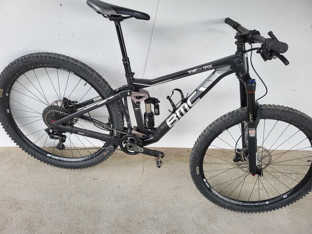 - Trailbike / Enduro 29" Grösse S Zu verkaufen gut erhaltenes BMC Trailfox TF02 Xo1. Rahmengrösse S für 166-175cm. Carbon-Hauptrahmen und Aluminium Hinterbau mit top Fahrwerk bestehend aus einer 150mm RockShox Pike Federgabel und einem Cane Creek Double Barrel CS Dämpfer(150mm Federweg) Schaltung: Sram X01 1x11 Bremsen: Sram Guide R Absenkbare Sattelstütze Rock Shox Reverb Bei verkauf neue Reifen und Bremsbeläge. Kaufbeleg ist nicht mehr auffindbar, das Bike wurde aber beim Lokalen Fahrradgeschäft gekauft. 1. Besitzer