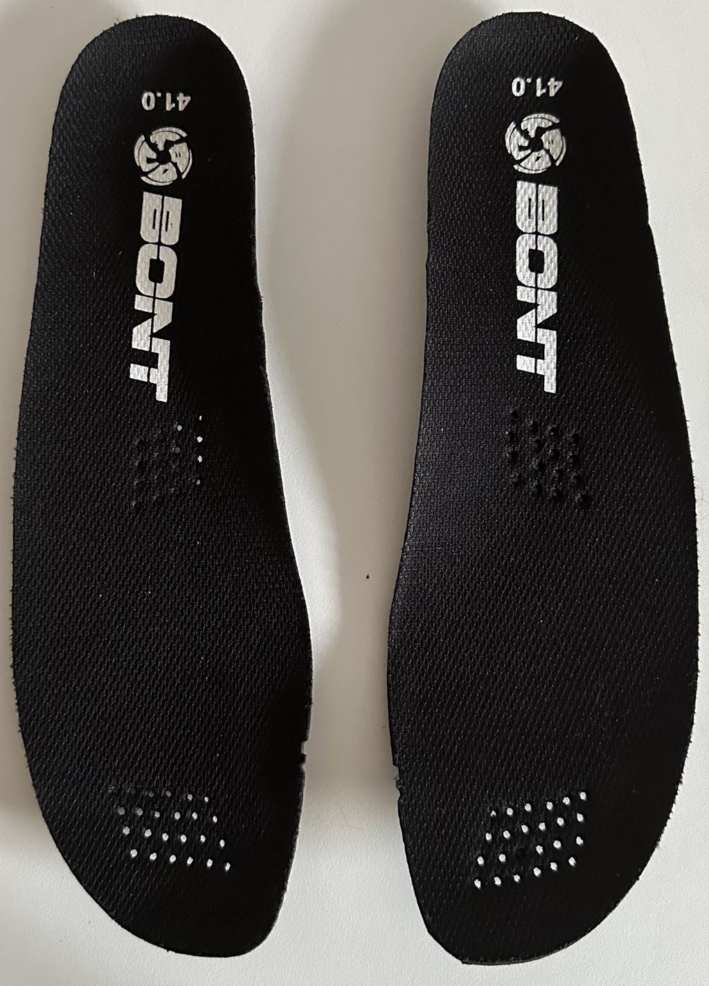 - Habe mit diversen Schuhen in unterschiedlichen Breiten Testfahrten durchgeführt. Diese hervorragenden Schuhe können bei 70 Grad im Backofen geformt werden. Die Schuhe wurden auf nur 3 Testrunden getragen. Leider sind sie mir etwas zu schmal. Habe mich für einen BONT Vaypor G Double Wide entschieden. Die Schuhe sind neuwertig und die Innensohlen unbenutzt. Sie werden mit einem praktischen Aufbewahrungsbeutel geliefert. Grösse EU 41, US 7.5, MM 255 Auf der Herstellerseite gibt es einen hervorragenden Grössen-Finder https://shop.bontcycling.com/pages/find-my-shoe-size# Neupreis CHF 185.00