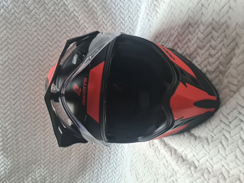 - Enduro Motorradhelm Gr L 58-59 Nur 1 Saison getragen, kaum Gebrauchsspuren. Verschluss ohne Klippsystem, intergrierte Sonnenschutzbrille (klipp system) und Klapp Visier.