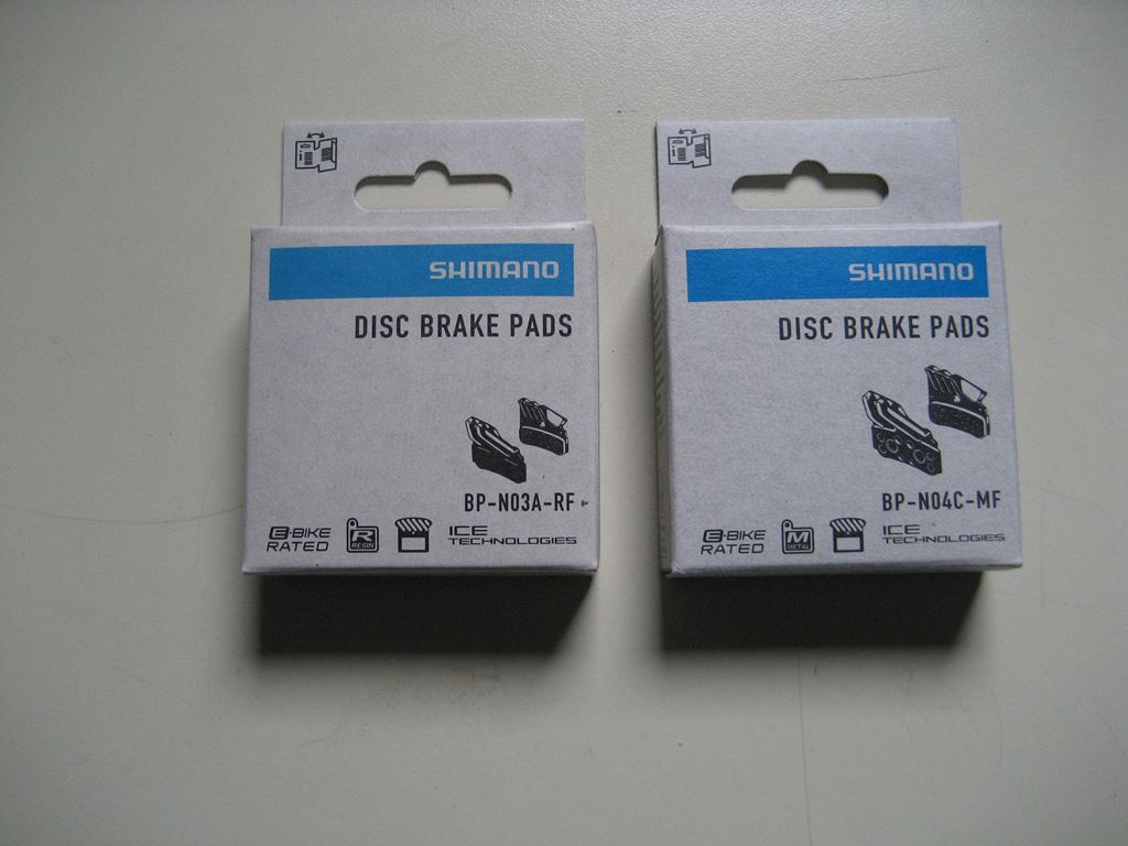 - Biete 2 Paar Shimano Bremsklötze mit Kühlrippen: 1x NO3A Organisch UVP 32.00 1x NO4C Gesintert UVP 40.00 Neu und Verpackung ungeöffnet.