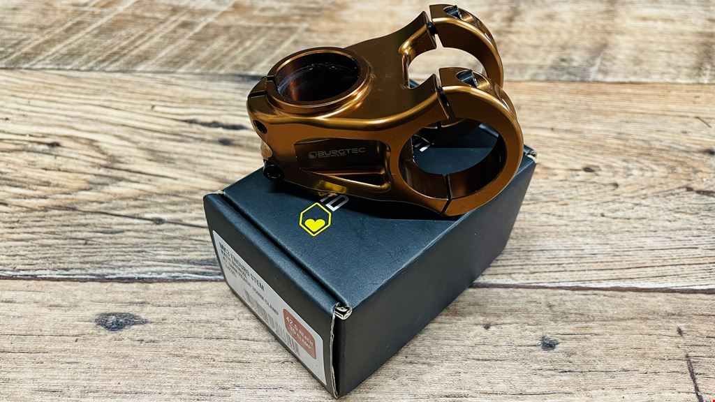 - Vorbau Burgtec Enduro MK3, Länge: 42,5mm für Lenker Durchmesser: 35mm, Farbe bronze, mit schwarze Better Bolts Titan Schrauben
