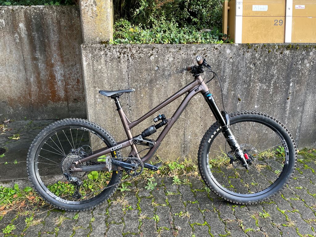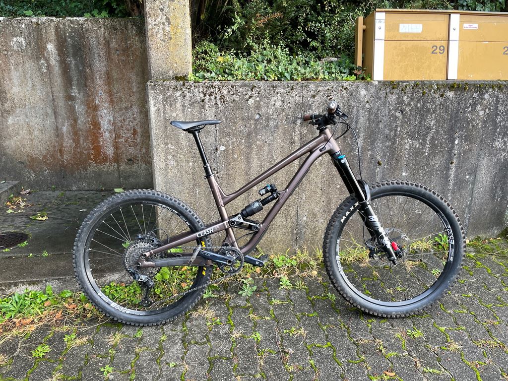 - Commencal clash essential in frozen brown Farbe mit einen matt finish. Ist die Version von 2023: -Rädern: 27.5 dt swiss E532 - Dämpfer: FOX Float X2 Performance 230 x 65 mm, LSC, LSR, 2 positions (open / firm) lever - Gabel: FOX 38 Performance, 180 mm travel - Bremsen: SHIMANO SLX, 4 pistons, I-Spec EV compatible - Schaltung system: Shimano Slx und einen Brand neues schaltwerk als Ersatz. - Pedalen: Stamp one s (black) - Grips: odi vans Das velo fährt sich super, ein paar steinen spuren vom shreden und der Schutz des Schaltungskabel ist aufgefressen aber behindert nichts beim Gang wechsel. Ausser die gebrauch spuren ist er im top zustand, paar accesoire gebe ich auch noch dazu und einen Brandneuen schaltwerk den ich zusätzlich schon gekauft hatte.