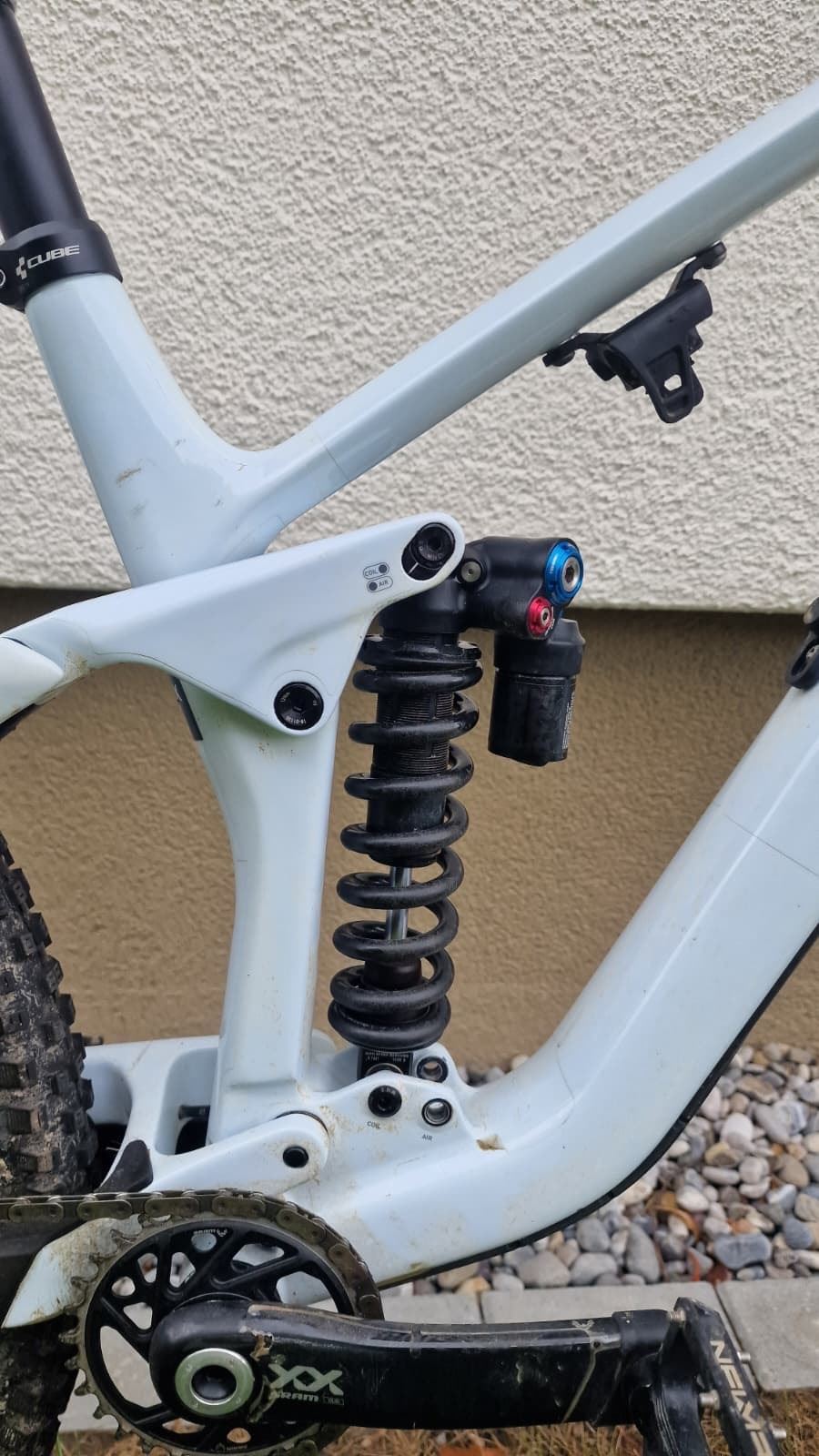 - Ich verkaufe mein Cube Stereo ONE77 C:68X SLT 29 aus dem Modelljahr 2025 in der Rahmengröße L und in der Farbe white’n’grey. Das Bike ist in einem hervorragenden Zustand und wurde nur ca. zweimal im Bikepark bewegt – seitdem stand es überwiegend. Um die Performance noch weiter zu optimieren, wurde das Bike mit einem Fox DHX Coil Dämpfer und einer SRAM XX Carbon Transmission Kurbel aufgerüstet. Dadurch bietet das Rad eine nochmals verbesserte Fahrdynamik, maximale Steifigkeit und optimierte Kraftübertragung – perfekt für technisch anspruchsvolle Trails. Highlights & Ausstattung: Modell: Cube Stereo ONE77 C:68X SLT 29 (2025) Rahmengröße: L Farbe: white’n’grey Laufräder: 29″ Newmen Carbon Laufradsatz Schaltung: SRAM XX Transmission (kabellos, 12-fach, Carbon-Kurbel) Dämpfer: Fox DHX Coil (nachgerüstet – Top-Upgrade) Gabel: Fox 38 Factory Kashima (170 mm) Bremsen: SRAM Code Ultimate 4-Kolben Sattelstütze: RockShox Reverb AXS (kabellos) Komplett kabelloses Cockpit → aufgeräumt, clean, keine losen Leitungen Zustand: Sehr wenig gefahren – nur ca. 2x im Bikepark Keine Stürze, keine Schäden Optisch & technisch wie neu