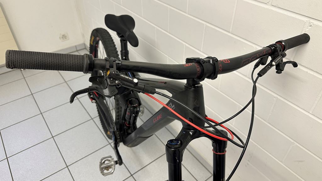 - Das Bike wurde nicht oft gebraucht, von daher in sehr gutem Zustand. Antrieb wurde ersetzt, Bremsen durch Shimano Saint ersetzt, Sattelstütze durch OneUp ersetzt. Pneu h+v ersetzt mit Cushcore hinten. Das Bike war gerade im Service.