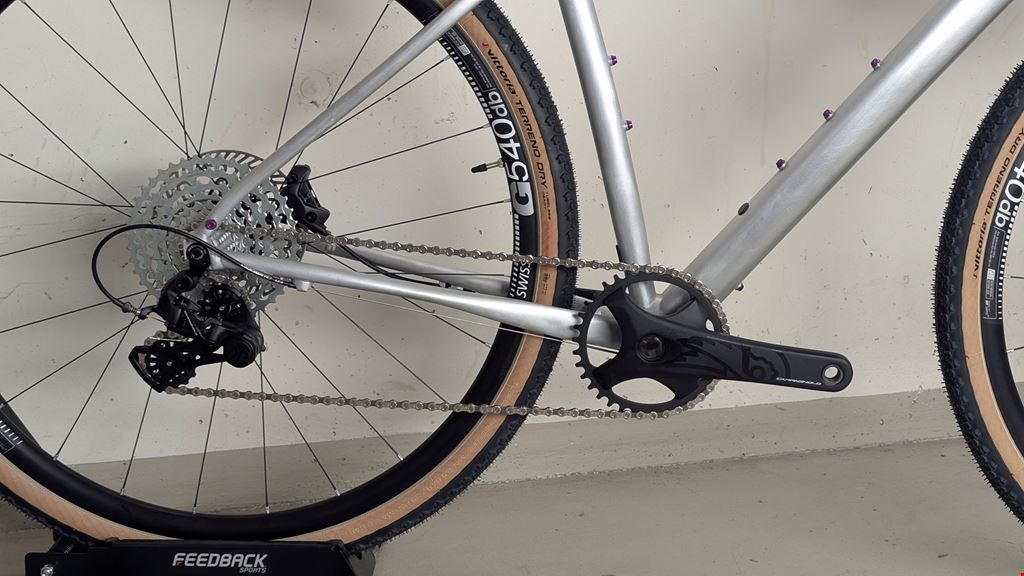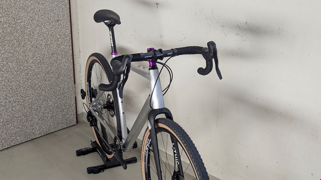 - Ein Cannondale Topstone wie kein anderes! Den Rahmen haben wir ablackieren lassen und dann von Grund auf Custom aufgebaut. Highlights sind die Campagnolo Ekar 1x13 Gruppe und die violetten Akzente von Wolftooth, die dem Bike einen "Retro" Look geben. Rahmen: Cannondale Topstone Alu, ablackiert und leicht verschliffen Gabel: Lithic Hiili Carbon Schaltung: Campagnolo Ekar 1x13 9-42z Bremsen: Campagnolo Ekar 2-Kolben 160/160mm Laufräder: DT Swiss G540 Aluminium Felgen 24L mit SuperCycle Naben Reifen: Vittoria Terreno Dry 37c Cockpit & Sattelstütze: Zipp 70 XPLR Das Bike kann bei uns im Laden besichtigt und Probe gefahren werden.