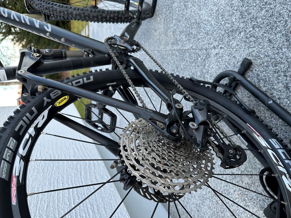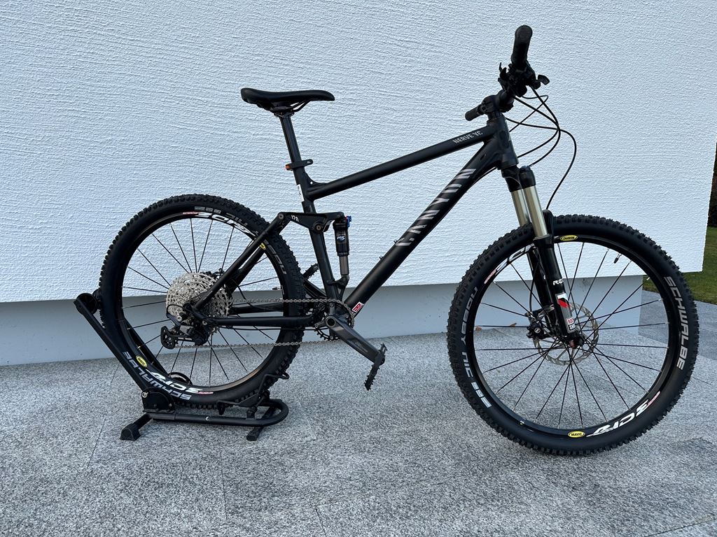 - Ich verkaufe mein Canyon Nerve Fully (ca. 16 Jahre alt). Ausstattung Rahmen: Canyon Nerve (Alu) ca. 2010 Schaltung: Shimano Deore Kassette: DEORE M5100 Kassette 11-fach / 11-51 Zähne Wechsler: DEORE M5100 Wechsel Shadow+ 11-fach für Kassette 11-51 Zähne Kurbel: DEORE M5100 1x10/11 Kurbel schwarz/170 mm / 30 Zähne Kette: XT / ULTEGRA HG701 SIL-TEC 11f / silber / 11FACH Tretlager: HOLLOWTECH II Tretlager, 24mm / schwarz / BSA 68/73mm Bremsen: Magura 2-Kolben (vorne & hinten), wurden frisch entlüftet Federgabel: Rockshox Recon (SN: 47T90030068), wird leider bei Rockshox nicht mehr angezeigt die SN Dämpfer: Fox Float RP23 - Einbaumass: 19cm x 4.5cm; Büchse oben: 2cm; Büchse unten: 2.5cm - SERVICE fällig, schmatzt Reifen: NEU NOBBY NIC Perf. Reifen / black / 26" x 2.25" TLR - mit Schläuchen (Schwalbe SV13) Sattelstütze: kein absenkbare verbaut, aber ältere absenkbare Stütze auf Wunsch dabei (Service nötig) Lenker und Griffe: beides von Bonträger (von meinem Trek ausgeschlachtet) Pedale: Race Face AEFFECT R Flatpedal Mängel: Sattelstütze: Verkratzt und die absenkbare bräuchte einen Service Dämpfer „schmatzt“, ein Service ist bei dem alten Modell oft nicht mehr möglich Gebrauchspuren am Rahmen