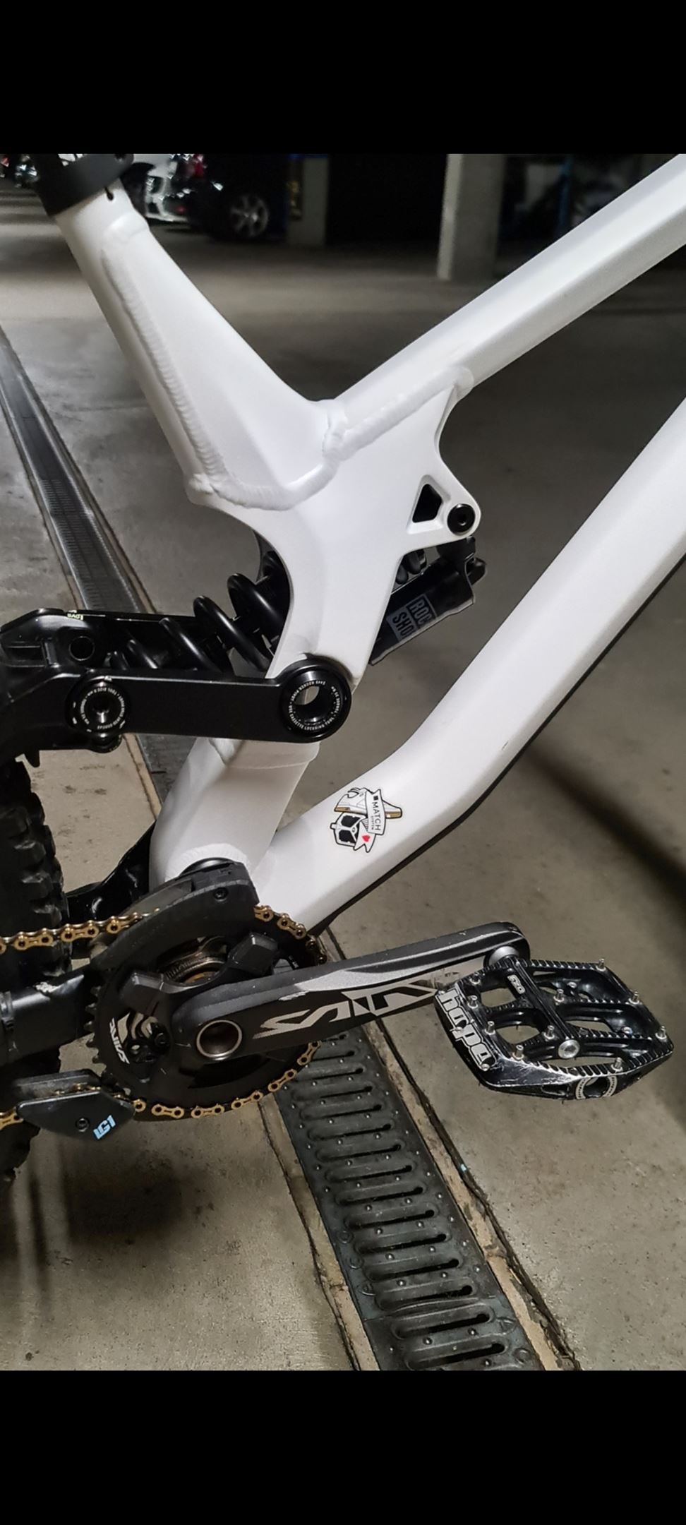 - Verkaufe mein Canyon Sender AL. Hauptrahmen weiß pulverbeschichten lassen. Gabel: Upgrade auf Boxxer Ultimate. Dämpfer: Rockshox Super Deluxe Coil Laufräder: Mavic Deemax DH Bremsen: Shimano Saint (neue Beläge) Antrieb: Sram GX DH 7-Fach (neue Kette) Kurbelgarnitur Shimano Saint Hope Pedale Reifen sind neu und auf tubeless umgerüstet. Die Inserts sind Pepi's R-Evolution Line. Das Bike ist in einem sehr gutem Zustand. Bei weiteren Fragen, gerne melden...