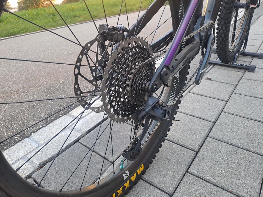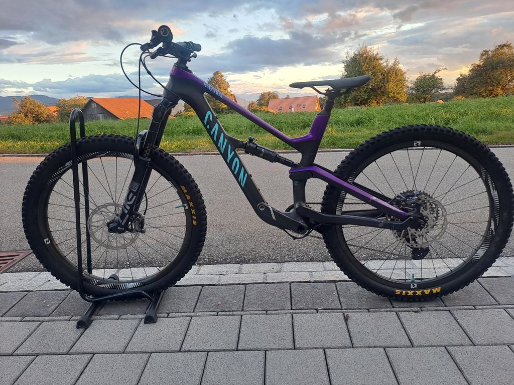 - Grüezi mitenand Ich verkaufe mein wunderschönes High End Trail - und All Mountain Bike von Canyon mit sehr hochwertigen und edlen parts in sehr gutem und gepflegtem Zustand. Canyon Spectral WMN CFR 9.0 Es ist das Top Modell der Spectral Reihe von Canyon mit dem leichtesten Vollcarbon Rahmen von Canyon: CFR (Carbon Frame Race). Mehr Carbon geht kaum: Der Hauptrahmen und der Hinterbau sind aus Carbon, die Reynolds Laufräder sind aus Carbon mit einer Innenbreite von 30mm, die Sram Kurbel ebenso und auch der Lenker. Rahmengrösse M, ideal für eine Körpergrösse von 170 cm bis 183 cm Das WMN Modell wurde für Frauen entwickelt, passt aber perfekt auch für Männer, die eine etwas aufrechtere und bequemere Position auf dem Bike bevorzugen. Der Reach ist um 2 cm kürzer als beim Männermodell und das Oberrohr etwas steiler abfallend, ansonsten sind die Masse gleich. Das Bike ist frisch ab Service, inklusive Gabel- und Dämpferservice. Alles funktioniert tadellos. verbaute Komponenten im Detail: Rockshox Pike Ultimate Federgabel mit 150 mm Federweg Rockshox Deluxe Ultimate Dämpfer mit 140 mm Federweg Sram X01 Eagle 1x12 Antriebsgruppe mit X01 10-50t Kassette und Sram Truvativ Carbon Kurbel volle Bremspower mit Shimano XT Bremsgruppe mit 4 Kolben Bremssattel und 200 mm Ice Tec Bremsscheiben federleichte 27.5 Zoll Reynolds Carbon Laufräder mit 30 mm Innenbreite absenkbare Rockshox Reverb Stealth Sattelstütze mit 150 mm travel Carbon Lenker Maxxis Pneus, tubeless verbaut Durch die wendigen und sehr leichten 27.5" Reynolds Carbonläufräder bist Du mit diesem Bike unschlagbar in jedem Aufstieg und hast auch im downhill mit den 150 mm bzw. 140 mm Federweg, der 4 Kolben Shimano XT Bremsgruppe und der ausgewogenen Geometrie jederzeit die volle Kontrolle über das Spitzen Bike. Ich freue mich auf Dein Interesse und Deine Kontaktaufnahme und zeige Dir sehr gerne dieses tolle Bike.
