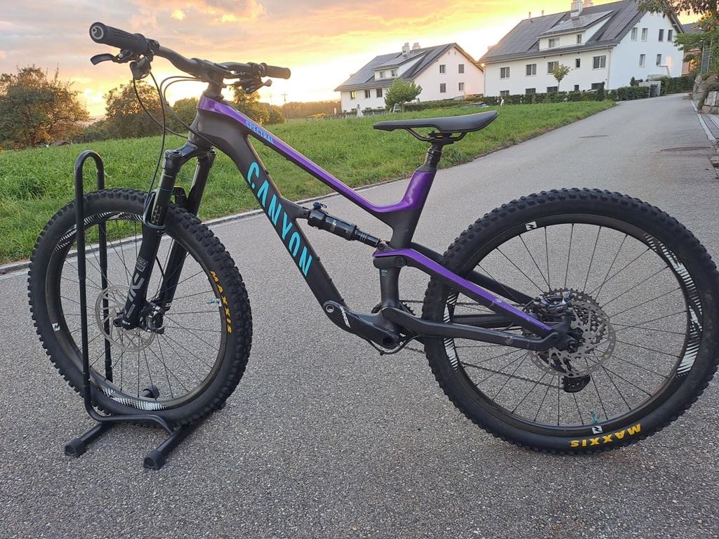 - Grüezi mitenand Ich verkaufe mein wunderschönes High End Trail - und All Mountain Bike von Canyon mit sehr hochwertigen und edlen parts in sehr gutem und gepflegtem Zustand. Canyon Spectral WMN CFR 9.0 Es ist das Top Modell der Spectral Reihe von Canyon mit dem leichtesten Vollcarbon Rahmen von Canyon: CFR (Carbon Frame Race). Mehr Carbon geht kaum: Der Hauptrahmen und der Hinterbau sind aus Carbon, die Reynolds Laufräder sind aus Carbon mit einer Innenbreite von 30mm, die Sram Kurbel ebenso und auch der Lenker. Rahmengrösse M, ideal für eine Körpergrösse von 170 cm bis 183 cm Das WMN Modell wurde für Frauen entwickelt, passt aber perfekt auch für Männer, die eine etwas aufrechtere und bequemere Position auf dem Bike bevorzugen. Der Reach ist um 2 cm kürzer als beim Männermodell und das Oberrohr etwas steiler abfallend, ansonsten sind die Masse gleich. Das Bike ist frisch ab Service, inklusive Gabel- und Dämpferservice. Alles funktioniert tadellos. verbaute Komponenten im Detail: Rockshox Pike Ultimate Federgabel mit 150 mm Federweg Rockshox Deluxe Ultimate Dämpfer mit 140 mm Federweg Sram X01 Eagle 1x12 Antriebsgruppe mit X01 10-50t Kassette und Sram Truvativ Carbon Kurbel volle Bremspower mit Shimano XT Bremsgruppe mit 4 Kolben Bremssattel und 200 mm Ice Tec Bremsscheiben federleichte 27.5 Zoll Reynolds Carbon Laufräder mit 30 mm Innenbreite absenkbare Rockshox Reverb Stealth Sattelstütze mit 150 mm travel Carbon Lenker Maxxis Pneus, tubeless verbaut Durch die wendigen und sehr leichten 27.5" Reynolds Carbonläufräder bist Du mit diesem Bike unschlagbar in jedem Aufstieg und hast auch im downhill mit den 150 mm bzw. 140 mm Federweg, der 4 Kolben Shimano XT Bremsgruppe und der ausgewogenen Geometrie jederzeit die volle Kontrolle über das Spitzen Bike. Ich freue mich auf Dein Interesse und Deine Kontaktaufnahme und zeige Dir sehr gerne dieses tolle Bike.