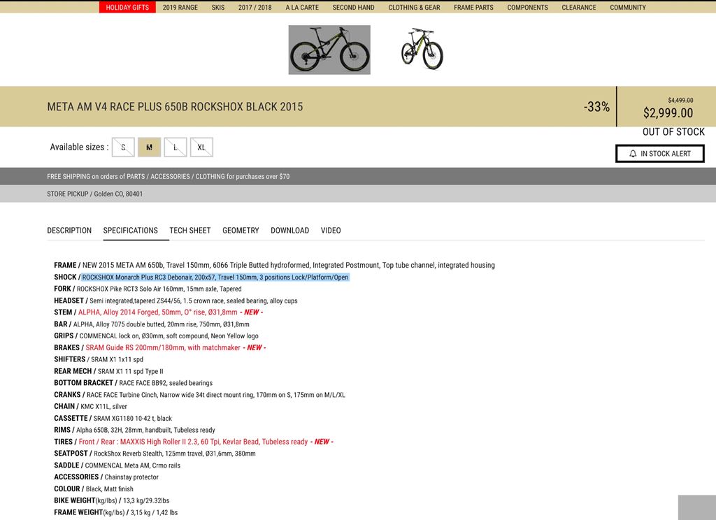 - Commencal Meta AM V4 black anodized worldcup 2015 Rahmengrösse M Geliebtes und deshalb gebrauchtes Meta, mit Gebrauchspuren ;) Ich bin das Bike bereits seit 3 Jahren nicht mehr gefahren, da ich umgestiegen bin. Es fährt, kann aber so nicht direkt auf Trails gehen: Es benötigt einen Service, inkl Bremsen checkup und bleed, und auch die Kassette & Kette sollte gewechselt werden. Nach einem Service ist das Bike für Anfänger:innen, die erstmal ausprobieren wollen, toll. Über die Jahre hatte ich einige Parts ersetzt. _ Bremsen Shimnao XT (Bremse rechts wurde mal ersetzt deshalb unterschiedliche Jahrgang/Farbe) _ SRAM X01 - 11 , Shifter, Kassette (muss ersetzt werden) und Schalterk _ Federweg hinten (RockShox Monach Plus Dämpfer) und vorne 150mm (RockShox Pike, nachgerüstet) (ursprünglich 160 vorne) _ 27.5 Laufräder, Commencal Ride Alpha _ Sattelstütze Oneup, nachgerüstet _ OneUp Carbon Lenker 35D 800L (inkl Stem) nachgerüstet _ Kurbel Renthal _ Wechsler SRAM X1 - 11 speed _ Kassette SRAM XG 1195 10-42t _ Reifen Maxxis Minion DHF 27.5 x 2.4 _ Pedale: KEINE (die Pedale auf dem Foto habe ich nur für eine Testrunde montiert) Ausprobieren und Abholgung nach Absprache Nähe Basel. Barzahlung oder Twint. Privatverkauf ohne Garantie.