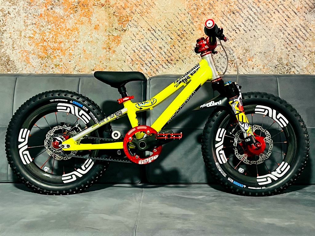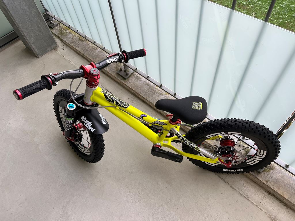- Fully customised 16er from Commencal Ramones portfolio! Lighter, quieter, safer, and most importantly - easier to ride if you are a little shredder. Frame is from 2015, all other build parts are 2021+. All build details are in the blog link below: https://traildevils.ch/Talk/PIMP-my-Mr-Mini-s-Commencal-Ramones-16-%EF%B8%8F-31d3717e5da9c76a30bb08d8663f6b20 New tires and fresh tubeless setup. Grips not included (custom engraved)! Possible to sell in parts if frame goes first, or I can remove some high-end components based on request and adjust the price accordingly. Messages from wisers "dude, you ask more than the new bike costs" will be 100% ignored. If you like new standard bike, buy a new standard bike. This bike is something else and it served us perfectly, without a single issue. The youngest boy overgrown it and therefore we decided to sell it. Tnx!