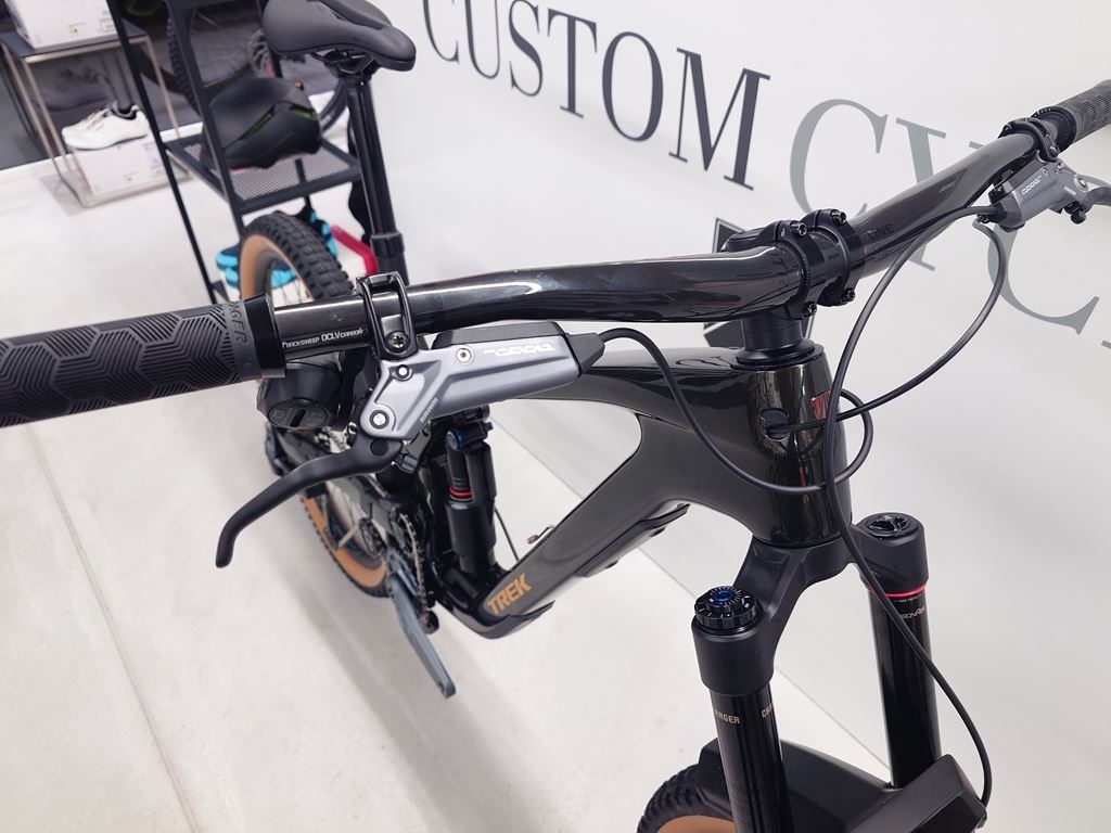 - Es hat, solange es hat! Preis gilt nur für Grösse L Sofort verfügbar im Shop Erlinsbach-Aarau Custom Cycling Aarauerstrasse 11B 5018 Erlinsbach- Aarau 062 525 95 44 Das Slash 9.8 GX AXS T-Type ist ein Carbon-Endurobike, das auch vor haarsträubenden Downhills nicht zurückschreckt. Sein Rahmen aus OCLV Mountain Carbon und das Fahrwerk mit hohem Drehpunkt und 170 mm Hub nimmt selbst große Brocken unbeeindruckt und brilliert bei steilen Rampen und schwierigen Ansteigen mit genialer Traktion. Ein 29˝-Vorderrad und 27,5er Hinterrad versprechen ein verspieltes Handling, während das starke RockShox-Fahrwerkspaket jede Aufgabe auf dem Trail mit Leichtigkeit löst. Darüber hinaus ist es mit einer drahtlosen SRAM GX AXS Transmission ausgestattet, die auch unter Last präzise schaltet. Rahmen OCLV Mountain Carbon, hoher Hauptdrehpunkt, Kettenumlenkrolle, internes Staufach, verstellbarer Steuersatzwinkel, anpassbare Progression, integrierter Rahmenschutz, interne Zugführung, Alu-Umlenkhebel, ISCG 05, Active Braking Pivot, UDH, 148 x 12 mm Steckachse, 170 mm Federweg Gabel RockShox ZEB Select+, DebonAir Luftfeder, Charger 3.1 RC2 Dämpfung, konischer Gabelschaft, 44 mm Versatz, Boost110, Maxle Stealth Achse, 170 mm Federweg Dämpfer RockShox Vivid Select+, 230 x 65 mm Laufräder *Vorderrad Größe: S Bontrager Line Comp 30, Tubeless Ready, 6-Loch-Scheibenaufnahme, Boost110, 15 mm Steckachse, 27.5" Größe: M, ML, L, XL Bontrager Line Comp 30, Tubeless Ready, 6-Loch-Scheibenaufnahme, Boost110, 15 mm Steckachse, 29" Hinterrad Bontrager Line Comp 30, Tubeless Ready, Rapid Drive 108, 6-bolt, Boost148, 12mm thru axle, 27.5'' *Reifen Größe: S , M, ML, L, XL Bontrager SE5 Team Issue, Tubeless-Ready, Core Strength Flankenschutz, Aramidwulstkern, 60 TPI, 27.5 x 2.50 Größe: M, ML, L, XL Bontrager SE5 Team Issue, Tubeless-Ready, Core Strength Flankenschutz, Aramidwulstkern, 60 TPI, 29 x 2.50 Reifen-Ersatzteil Bontrager TLR-Dichtmittel, 177 ml Max. Reifengröße Rahmen: 29 x 2.50", Gabel: Zum Hersteller E-System Akku SRAM AXS Akkupack (mit Ladegerät) Antrieb Schalthebel SRAM AXS POD Schaltwerk SRAM GX Eagle AXS, T-Type Kurbel SRAM GX Eagle, DUB MTB Wide, T-Type, 30 Z., 55 mm Kettenlinie, 165 mm Kurbelarmlänge Tretlager SRAM DUB MTB Wide, 73 mm, BSA-Gewinde Kassette SRAM Eagle XS-1275, T-Type, 10-52 Z., 12fach Kette SRAM GX Eagle, T-Type, 12fach Max. Kettenblattgröße 1x: 34 Zähne, oval - 32 Zähne, min.: 28 Zähne Komponenten Sattel Verse Short Comp, Stahlstreben, 145 mm Breite *Sattelstütze Größe: S Bontrager Line Dropper, 100 mm Hub, MaxFlow, interne Zugführung, 34,9 mm, 310 mm Länge Größe: M, ML, L, XL Bontrager Line Elite Dropper, 150 mm Hub, MaxFlow, interne Zugführung, 34,9 mm, 440 mm Länge Lenker Bontrager Line Pro, OCLV Carbon, 35 mm, 27,5 mm Rise, 820 mm Breite Griffe Bontrager XR Trail Pro, Aluminiumklemme Vorbau Bontrager Line Pro, 35 mm, Blendr-kompatibel, 0 Grad, 35 mm Länge Bremse Hydraulische 4-Kolben-Scheibenbremse SRAM CODE Bronze Bremsscheibe SRAM CenterLine, 6-Loch-Scheibenaufnahme, abgerundete Kante, 200 mm Bremsscheibendurchmesser Max. Bremsscheibendurchmes