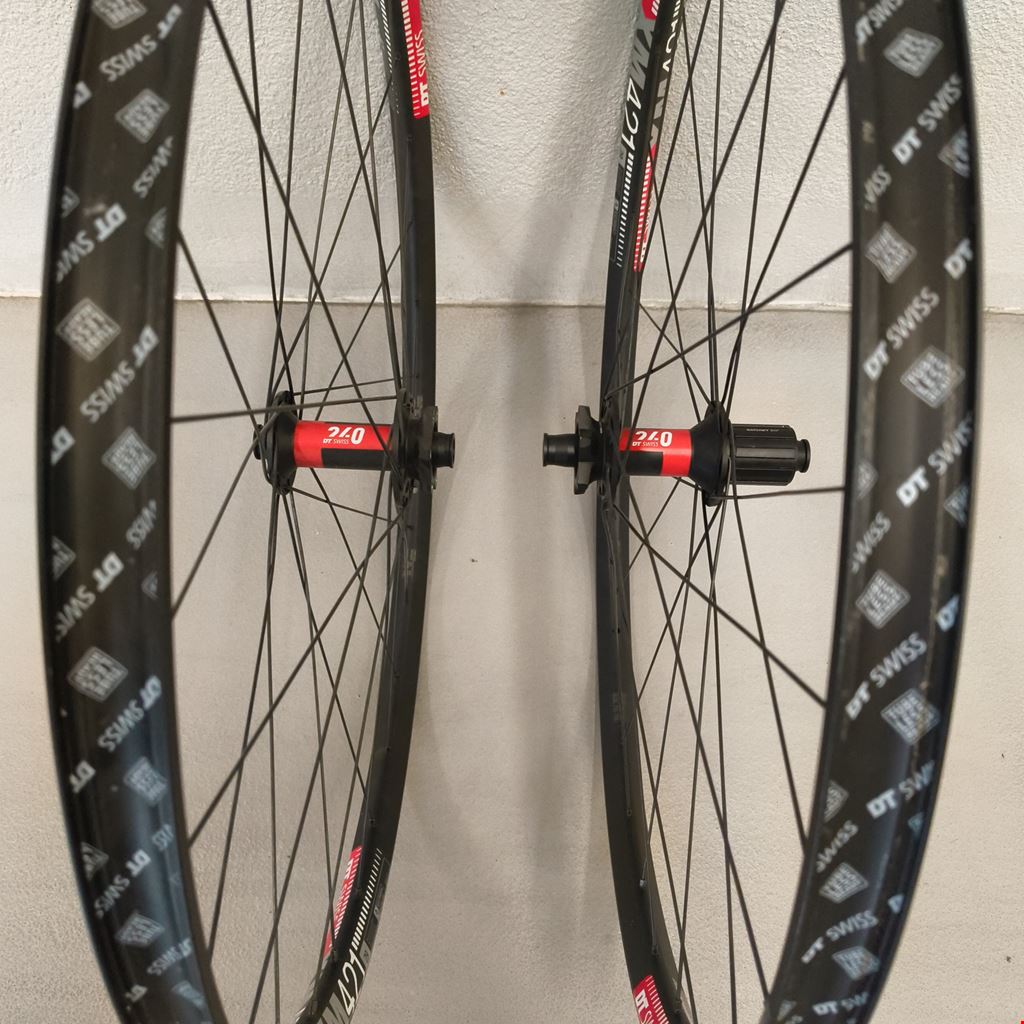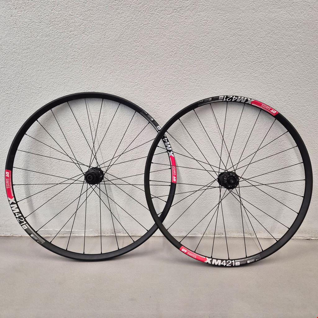 - Hinterrad: DT Swiss XM421 Felge mit DT Swiss 240 Nabe, 28 Speichen, 6-Loch, 12x148mm, Shimano HG, 25mm Felgenbreite. Vorderrad: DT Swiss XM421 Felge mit DT Swiss 240 Nabe, 28 Speichen, 6-Loch, 15x110mm, 25mm Felgenbreite. Wurde von uns aufgebaut. Tubeless ready.