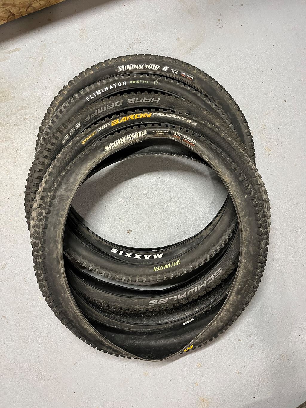 - Alle in 29“, bis auf den Aggressor (ganz vorne im Bild, 27.5“). Alle mit EXO Karkasse oder vergleichbar. Lagen eine Weile im Keller, Profil ist bei allen noch gut, teilweise wie neu. Nur Abholung in 8004 Zürich.