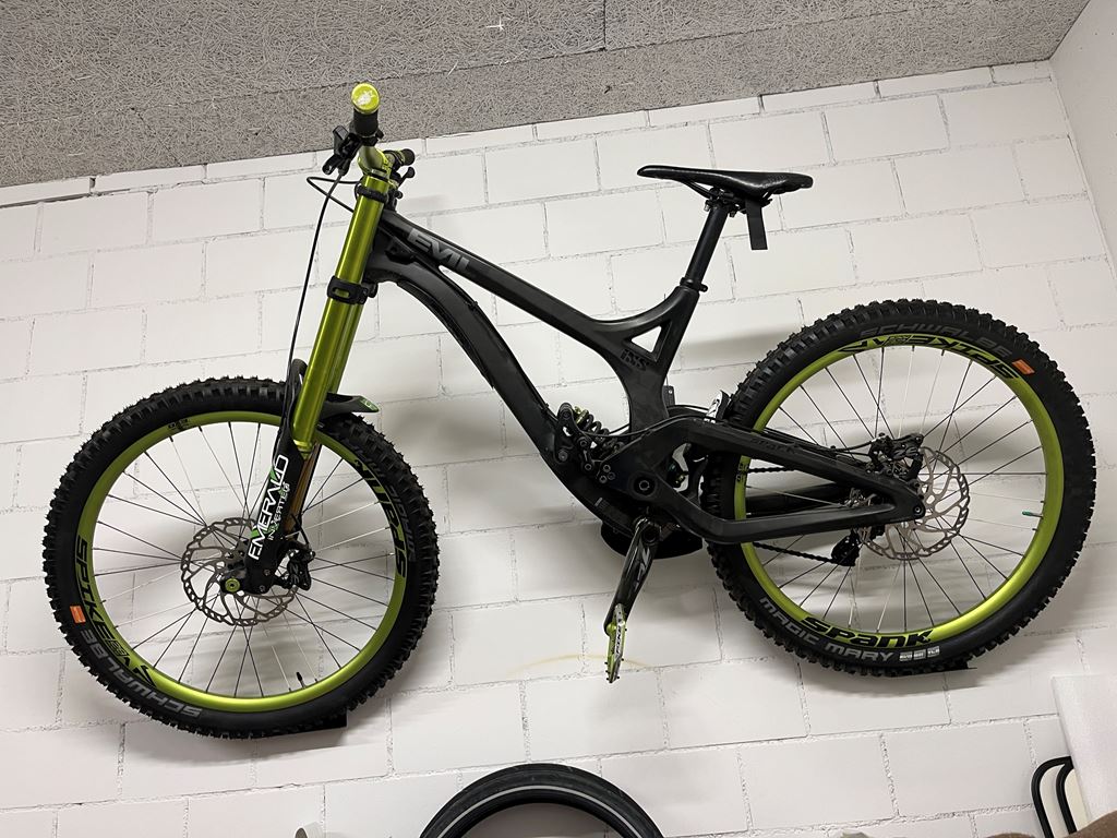 - Verkaufe mein Evil Undead Downhill Bike (Carbonrahmen) in sehr gutem Zustand. Das Bike wurde stets gepflegt, kein Bikepark-Dauerbrenner, keine Stürze mit Rahmenschäden. Normale Gebrauchsspuren vorhanden, technisch alles top. Ausstattung: - Rahmen: Evil Undead Carbon, Downhill - Federgabel: DVO Emerald DH (Top Downhill-Gabel) - Dämpfer: DVO Jade Coil Shock - Vorbau: Spank Spike Direct Mount, 31,8 mm - Lenker: Spank Spike 777 EVO - Laufräder: Spank Spike 28 Race - Bremsen: Shimano Zee, kräftig & zuverlässig Zustand: - Sehr guter Zustand – keine Risse oder Beschädigungen am Rahmen - Alle Lager spielfrei - Bremsen, Federung und Schaltung funktionieren einwandfrei - Bike ist sofort einsatzbereit