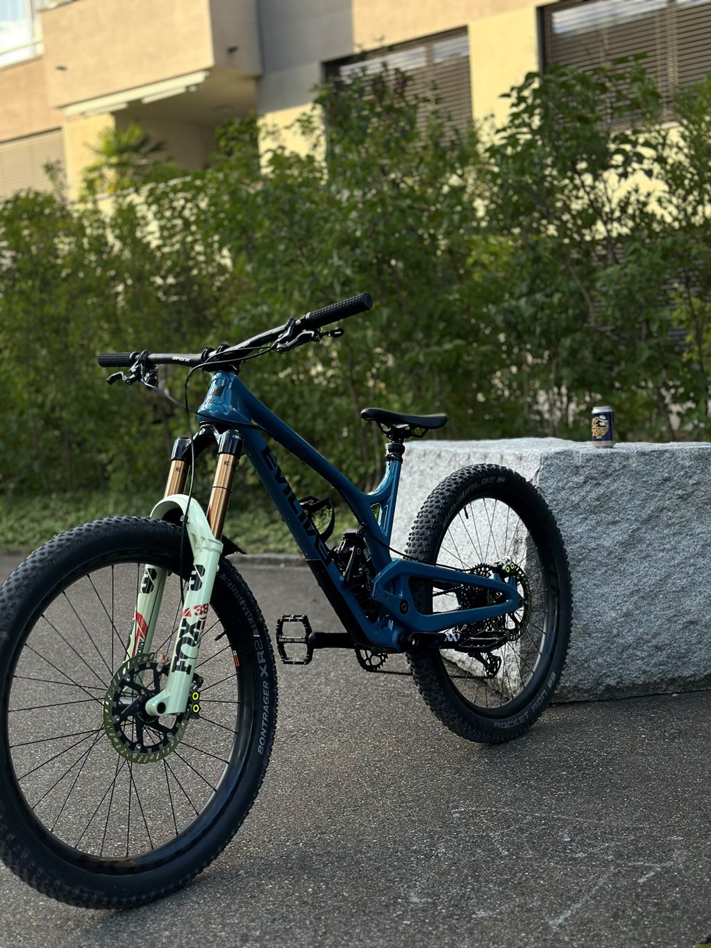 - Hallo zusammen, Zum Verkauf steht mein Evil Offering V1 (Grösse M). Bike ist – wie auf den Bildern zu sehen – wie neu. 👉 Gewicht: 14,1 kg (mit Carbon-Lenker & anderen Pedalen ca. 13,9 kg). Setup: • ⚡️ Fox 38 Kashima Grip2 Limited Edition in Pistachio – mega selten & absoluter Eye-Catcher 👀 • inkl. original Fox Schutzblech • RockShox Super Deluxe Ultimate (HsC / LsC / HsR / LsR + Lockout) • Bontrager 27.5 Carbon Laufräder • Magura MT7 Pro Bremsen mit MDR-P 203 mm Scheiben • ⚡️ SRAM XX1 AXS Transmission – Top of the Line: XX1 AXS Schaltwerk mit CNC-Alu-Röllchen & Keramiklagern XX1 Rainbow 10–50 Kassette XX1 Rainbow Kette XX1 Carbon Kurbel inkl. AbsoluteBlack Oval Kettenblatt XX1 AXS Schalthebel + Akku • PNW Components Dropper Post • Loose Riders Pedale – fast unmöglich zu finden Bei Fragen einfach melden. Mehr Fotos gibt’s hier: https://drive.google.com/drive/folders/1YMgGzunJ1glCMgUmjKExkeYPkX9pokbZ