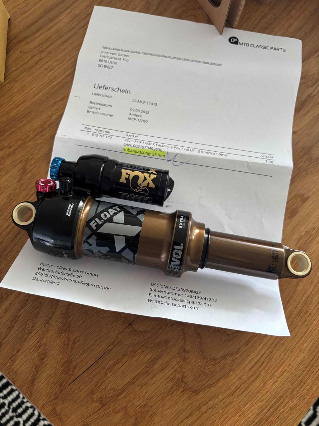- Neuer Fox Float Factory Dämpfer. Gekauft und nicht eingebaut original verpackt. Hublänge wurde vom Shop direkt von 50 auf 55mm erhöht. Jahrgang 2025