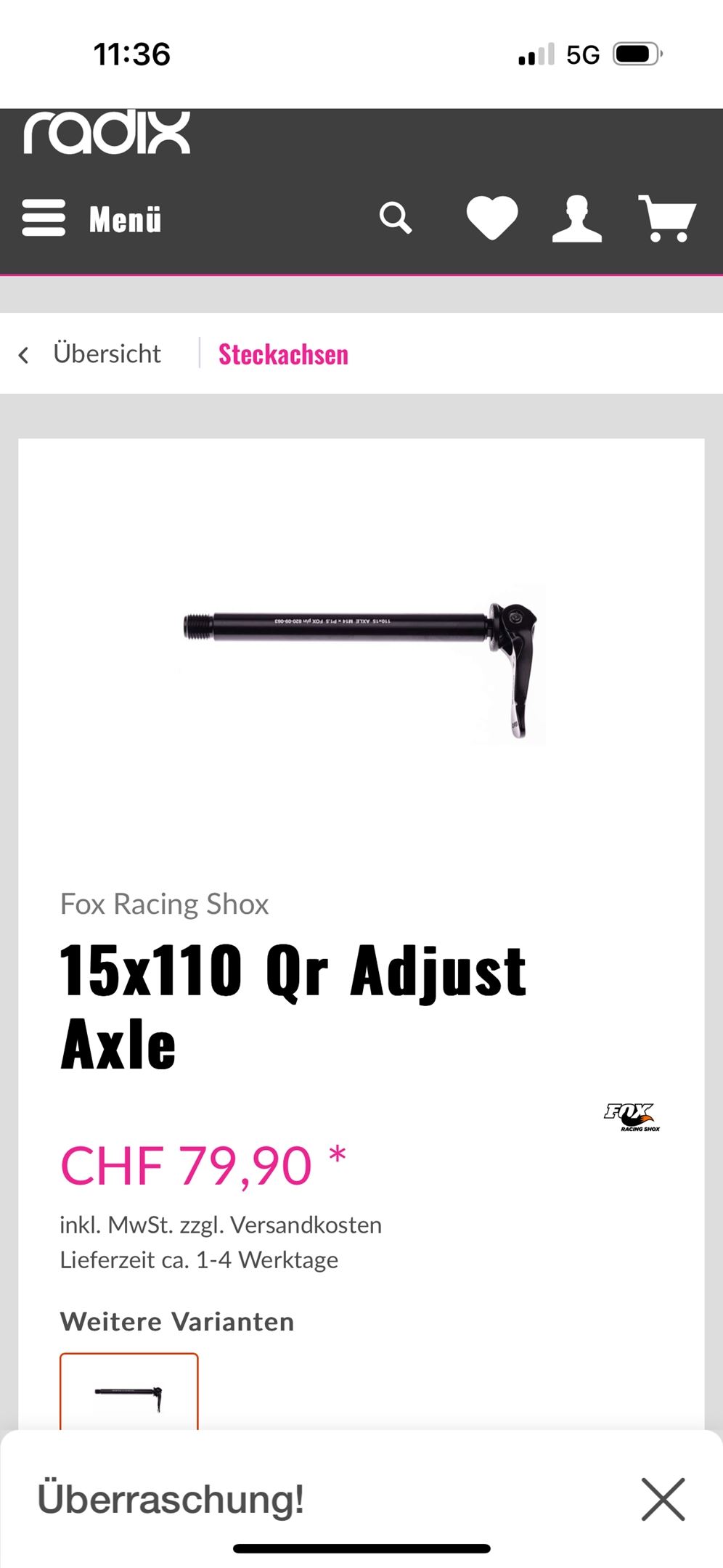 - Verkaufe Fox QR 15 x 110 System. Wurde aus eine Fox 36 ausgebaut. Geht wohl auch für andere Fox Gabeln. Bei Unsicherheit ob es für deine Gabel passt check Fox Produktbezeichnung: M14 x p1.5 Fox p/n 820-09-063