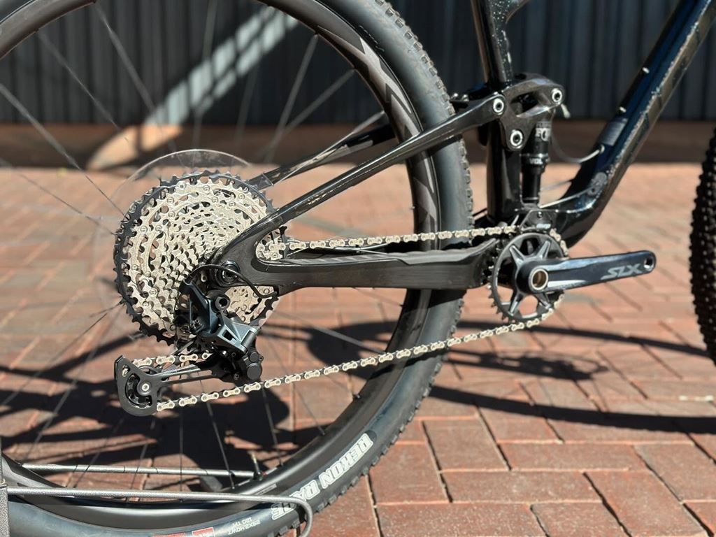 - Taglie S, M, L, XL Colorazioni Black Diamond / Carbon Telaio Advanced-Grade Composite front and rear triangles, 100mm FlexPoint Pro suspension, 12x148mm thru-axle Forcella Fox 34 Float SC Performance Remote, 110mm, FIT4 damper, Boost 15×110 Kabolt, 44mm offset, remote lockout, custom tuned for Giant Ammortizzatore Fox Float DPS Performance Elite, 165/45, custom tuned for Giant Manubrio Giant Contact XC Flat, composite, 760x35mm Manopole Giant XC Pro S:32mm, M:32mm, L:34mm, XL:34mm Attacco manubrio Giant Contact SL XC, 35mm S:60mm, M:70mm, L:70mm, XL:70mm Reggisella Giant Contact Switch dropper, remote S: 125mm travel / 30.9 x 395mm M: 125mm travel / 30.9 x 395mm L: 150mm travel / 30.9 x 440mm XL: 150mm travel / 30.9 x 445mm Sella Fi’zi:k Antares R7 with S-Alloy rails Pedali N/A Leve del cambio Shimano SLX M7100, 1×12 EV Deragliatore Anteriore N/A Deragliatore Posteriore Shimano SLX RD-M7100, Shadow+ Freni Shimano Deore BR-M6100, hydraulic, Shimano RT-56 rotors [F]180mm, [R]160mm Comandi freno Shimano Deore BL-M6100 Pacco pignoni Shimano SLX M7100, 10×51 Catena KMC X-12 Guarnitura Shimano SLX, 32t S:170mm, M:175mm, L:175mm, XL:175mm Movimento centrale Shimano, press fit Cerchi Giant XCR 2 29 Carbon WheelSystem Mozzi Giant XCR 2 29 Carbon WheelSystem Raggi Giant XCR 2 29 Carbon WheelSystem Coperture Maxxis Recon Race 29×2.4, foldable, TLR, EXO, tubeless Extra tubeless prepared, 2.4″ max tire size, 34t max chainring size, Giant/MRP CS chain guide