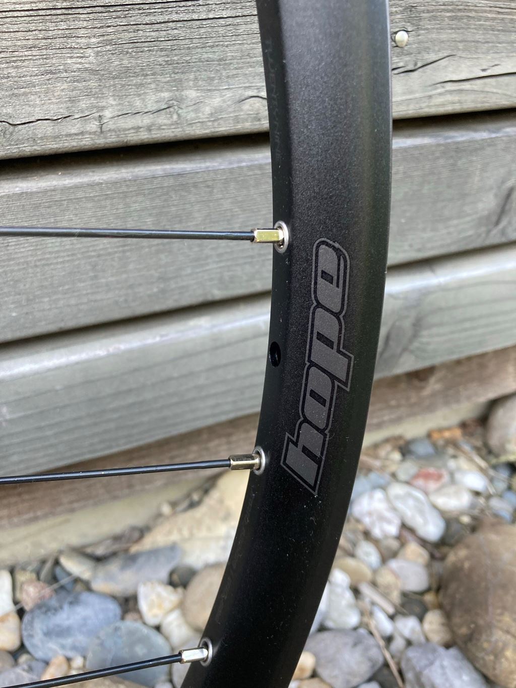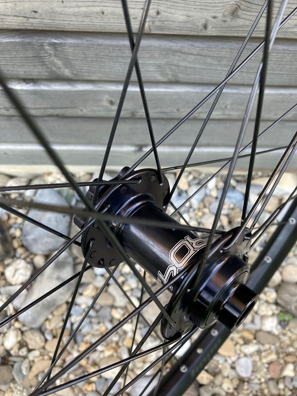 - Black Beauty! Neues, nie gefahrenes 29" Hope Fortus26 Vorderrad. Ideal für Trailbikes, edel, hochwertig und Hope-typisch robust und langlebig. Nabe: Hope Pro 4 Boost 110 x 15mm, IS-Bremsaufnahme (6 Loch), schwarz Felge: 29" 6061 T6 Alu, 26mm Maulweite (Innenbreite, ideal für Reifen von 2.25 bis 2.5"), schwarz, 32 Loch, geöst, Tubeless Ready (Ventil und Felgenband inkl.) Speichen: Sapim Race double butted, schwarz, Stahl, J-Bend mit silbernen Messing-Nippeln Herstellerinfo: https://www.hopetech.com/products/wheels/trail/fortus-26-pro-4/#tech