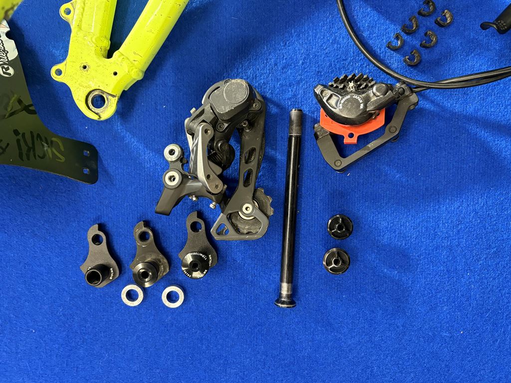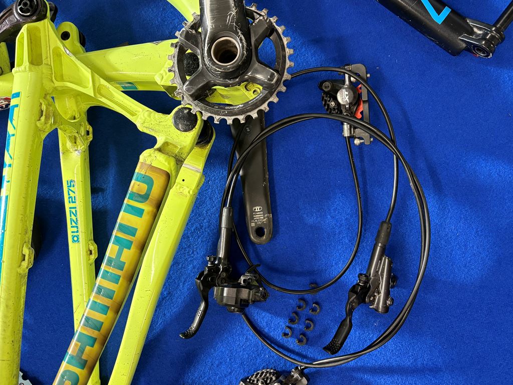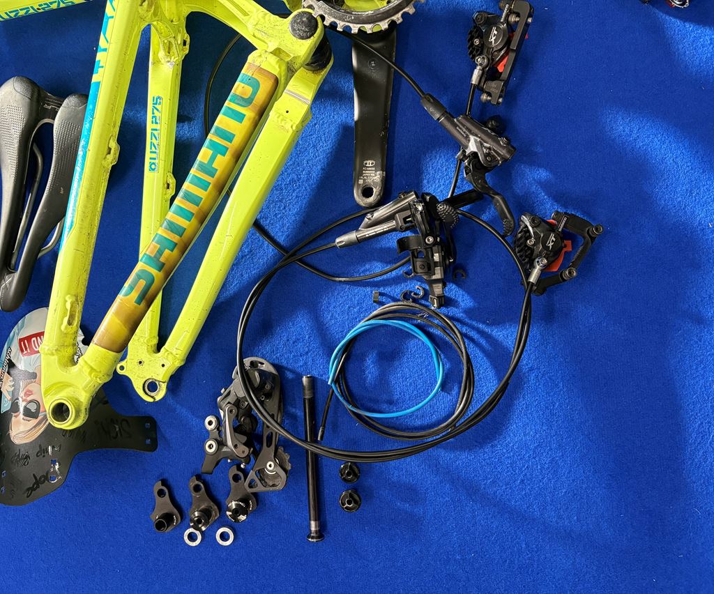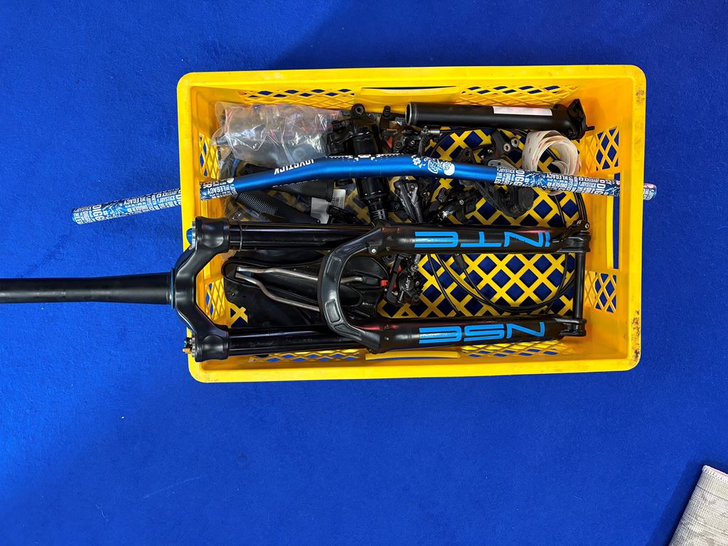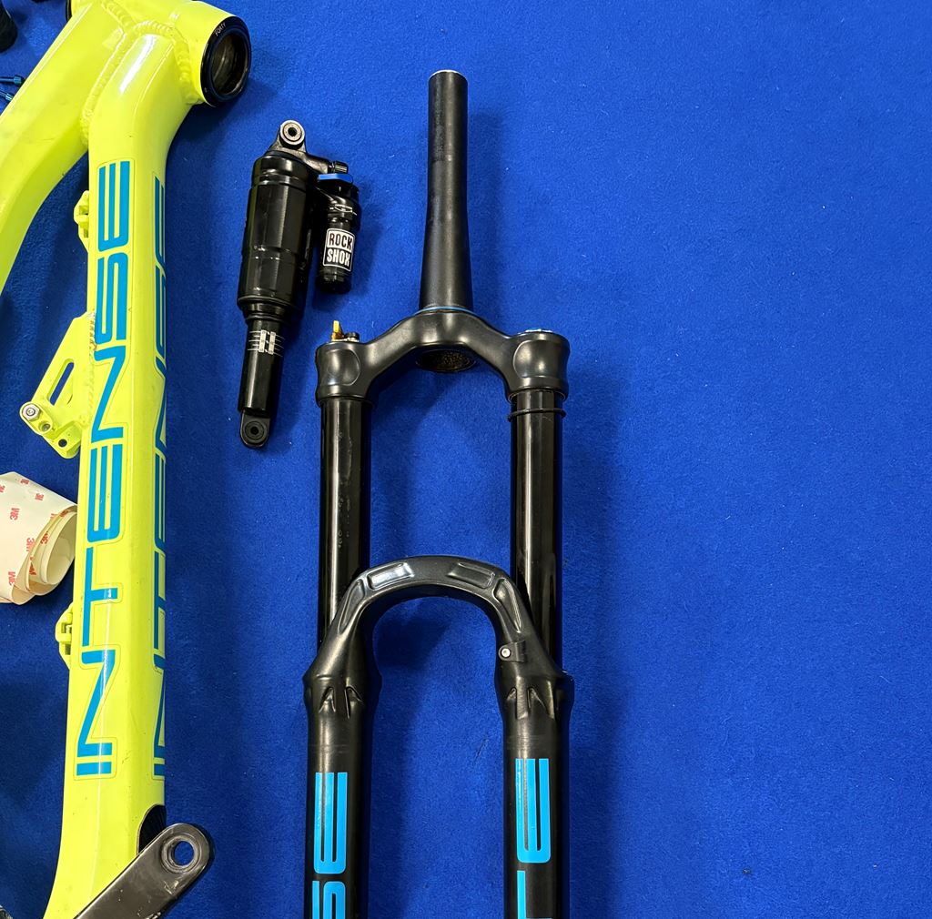 - Die Super Freerider / Enduro Kiste als Bausatz (gebraucht): - Rahmen Intense uzzi vp 27.5, gr. M inkl. Flip Chip und Kabelklemmen - Steuersatz cane creek - Vorbau nukeproof inkl spacer - Lenker joystick digger Alu 780mm - Griffe deity (neu) - Gabel marzocchi Bomber z1 180mm m full block (evtl. Service nötig) - Dämpfer rock shox 180mm - Innenlager xt & kurbel xt 30t - Bremsen shimano xt 203mm v / 180mm h (müssen evtl. gelüftet werden) - Schalthebel xt 11 fach, kassette xt 11-42 - Schaltwerk SLX 11 fach (2023) - Felgen Ethirteen TRSr Carbon (NP über 3k!) - Pneu Maxxis High Roller 27.5 x 3.2h / 27.5 x 2.4v - Sattelstütze propain, sattel selle italia slr carbon (kurzer Sattel) - Achsen 148x12h, 110x15v - Dazu: Ersatzausfallenden, tubeless ventile nukeproof, ersatzgelenkschrauben - Optional: Ersatzbremsscheiben XT (ungebraucht), frameprotection folie, riesel send it dirt protection, 1 Satz neue Maxxis High Roller 2.3, Pedale DMR Vault Rot und Ersatzpins (alles zusammen Aufpreis 90 CHF) - Ein Satz neue XTR Schaltkabel ist dabei Das Intense UZZI VP war der 27.5 Zoll Freerider der Massstäbe gesetzt hat, der wunderschöne Alu Rahmen, die XT Ausstattung, die Top Federelemente, die super Räder. Vor paar Jahren Spitzenklasse und auch heute noch Top to Ride.