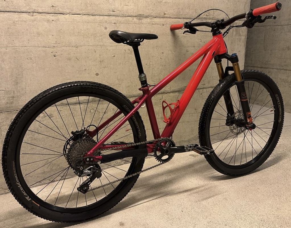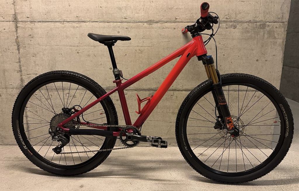 - Rahmen: KOBA Racetool 26“ Grösse: 34cm XXS (ab 135cm) Farbe: fuchsia/brombeer pulverbeschichtet Gabel: Fox 32 Factory 26“ 100mm Schaltung: Shimano SLX M7100 11spd Kassette: Shimano SLX M7100 11-46t Kurbel: Sram NX 11spd Bremsen: Magura MT4 160/160 Steuersatz: Wolftooth Geoshift -1 Grad angle Set Sattelstütze: XLC Dropper 31.6mm, 100mm Travel Sattel: Fizik Vorbau: JD 35mm Lenker: Pro 740mm; 20mm Rise Einzigartiges Kinderbike mit kompaktem 34cm Rahmen. ideal für Kinder ab ca. 135cm Körpergrässe. Überstandhöhe Oberrohr bis Boden ca: 65cm (vor dem Sattel gemessen. Top Federgabel und Bremsen. Durch das sehr geringe gewicht fährt sich das Bike sehr agil und leichtfüssig. Der kompakte Rahmen mit den „grossen“ 26“ Laufräder sind der Gamechanger für die Kinder - das Vorwärtskommen fällt ihnen deutlich leichter und selbst grössere Hindernisse werden sicher überrollt. Einige kleine Kratzer und Gebrauchsspuren, ansonsten sehr gepflegt und top Zustand!