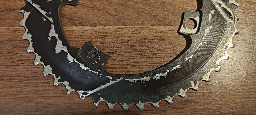 - Die Kettenblätter (110/4 BCD, 46/30T) sind einwandfrei erhalten und haben <200km hinter sich (2025 bei r2b gekauft). Funktion ist einwandfrei; inkl. speziellen Kettenblattschrauben. absoluteBLACK Sub-Compact Oval Kettenblätter Gravel (BCD 110/4, 46/30T) Es sind keinerlei Zähne abgefahren oder dergleichen. Das große Kettenblatt hat konstruktionsbedingt vier etwas kürzere Zähne (ca. in Höhe der Aufnahmelöcher; vgl. Originalbilder von AbsoluteBlack & Verschleiß kl. Kettenblatt). Die Blätter werden nur auf Anraten des Bikefitters wg. Hüftproblemen abgegeben (die Belastung bei oval verschiebt sich weg von den Knien Richtung Hüfte). Ansonsten geniale Bergübersetzung für extreme Steigungen!