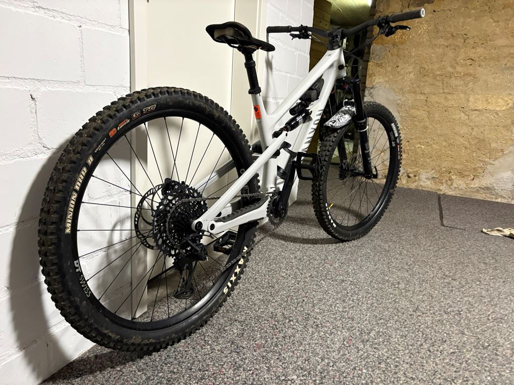 - Ein Wolf im Schafspelz Wenig Federweg heisst nicht wenig Kontrolle: Das Spectral 125 holt maximale Performance aus seinen 140 mm Vorder- und 125 mm Hinterbau-Federweg. Der 64°-Lenkwinkel und der lange Reach sorgen für Enduro-Vertrauen, wenn der Trail steil und lose wird. Maximale Pop-Federung für Schub und Unterstützung beim Hoch- und Runterspringen oder beim seitlichen Driften – das ist der schnellste oder einfach spassigste Weg über den Trail. Das Bike ist frisch ab Service. Dabei wurde eine Magura MT5 Bremse ersetzt, sowie eine neue Kassette und Kette montiert. Weiter wurde der Steuersatz ausgewechslet. Das Bike wurde mit einem RS Super Deluxe Ultimate Dämpfer geupgradet. Orignal-Dämpfer RS Deluxe Select+ wird mitgegeben. Weitere Ausstattung: - RockShox Pike Select+ 140mm - SRAM GX Eagle, 12-speed Antrieb - DT Swiss M1900 Laufräder - Carbonrahmen 2,2 kg Es weisst die üblichen Gebrauchspuren nach dem Einsatz auf. Das Bike ist ansonsten in einem Top-Zustand.