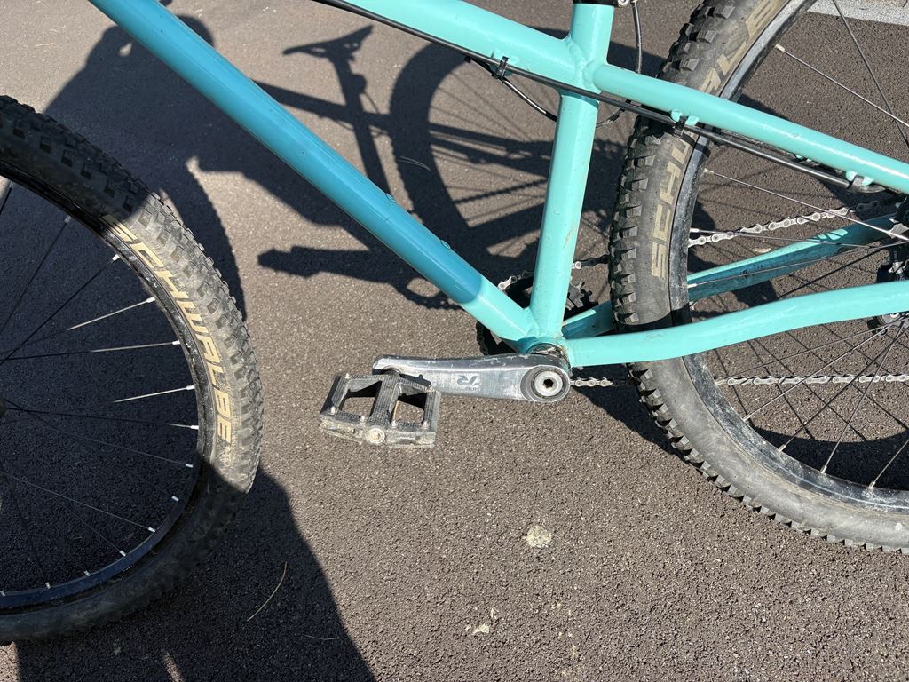 - MWORX Kinderbike, 26" aus erster Hand. Kein VPACE, dafür bezahlbarer. Siehe auch den langen thread auf MTB-News: https://www.mtb-news.de/forum/t/mworx-bikes.921238/ Rahmen: MWORX Nabe HR: Hope Pro2 EVO (XD Driver montiert, HG Driver beiligegend Nabe VR: Kore Felgen: Stans Flow MK1 Kurbel: XTR, von mir gekürzt. Kettenblatt: Narrow Wide 30t von Ali Kassette: Sram 10-42 Schaltwerk: Sram GX Trigger: Sram GX Gabel: Rock Shox SID Dual Air, mit Karbon Brücke / Shaft. Keine Schönheit, und dämpfen tut sie halt wie eine Gabel von damals, aber sie spricht dafür auch bei geringem Gewicht an. Wurde geserviced, als das Bike aufgebaut wurde (2022). Sattelstütze: Mechanische Dropper, Normale Stütze gebe ich dazu, da Dropper initial ev. zu hoch. Sattel: China Karbon (Schale + Rails). Der Neupreis representiert meinen Invest, in Gebraucht+Neuteile.