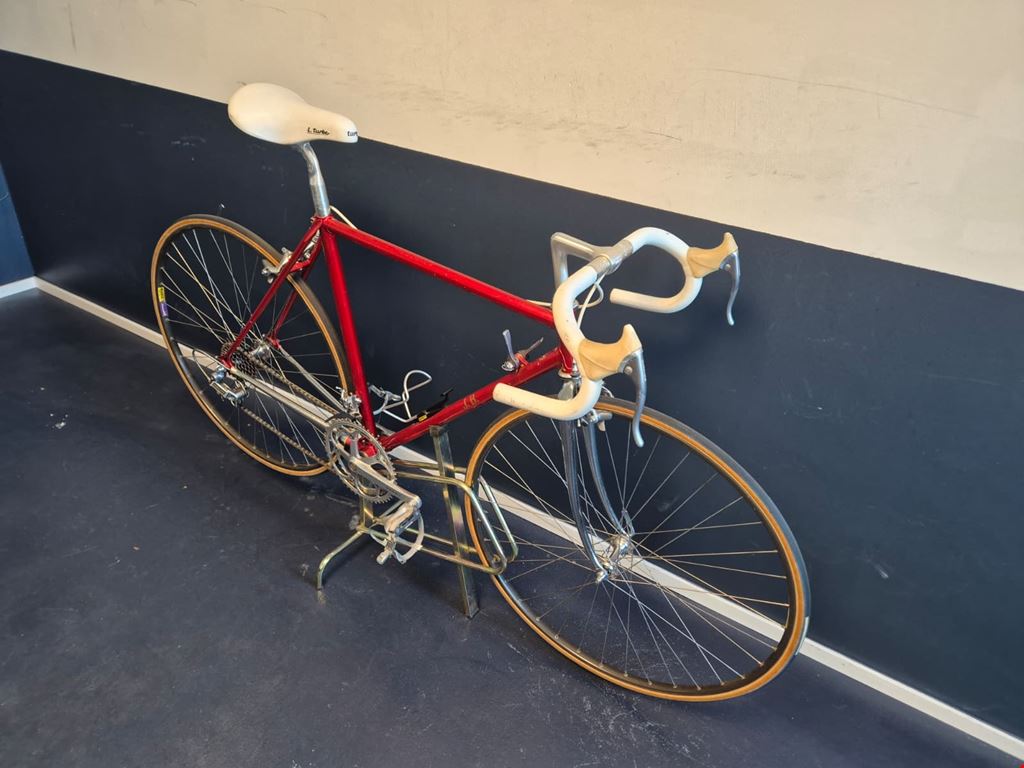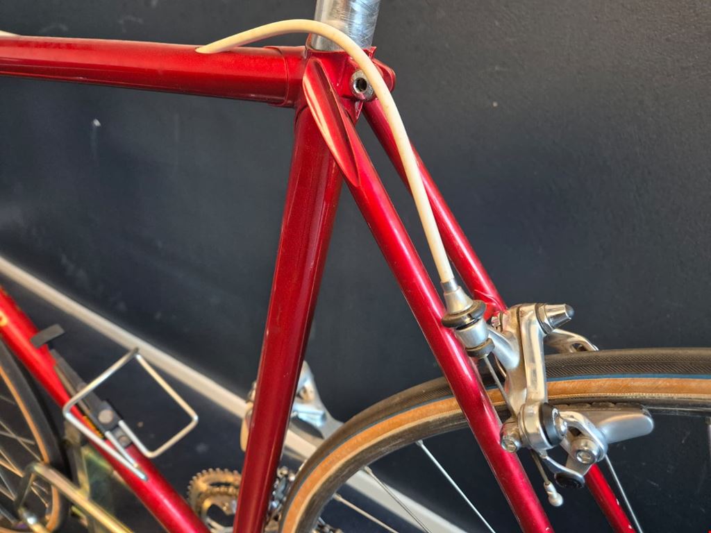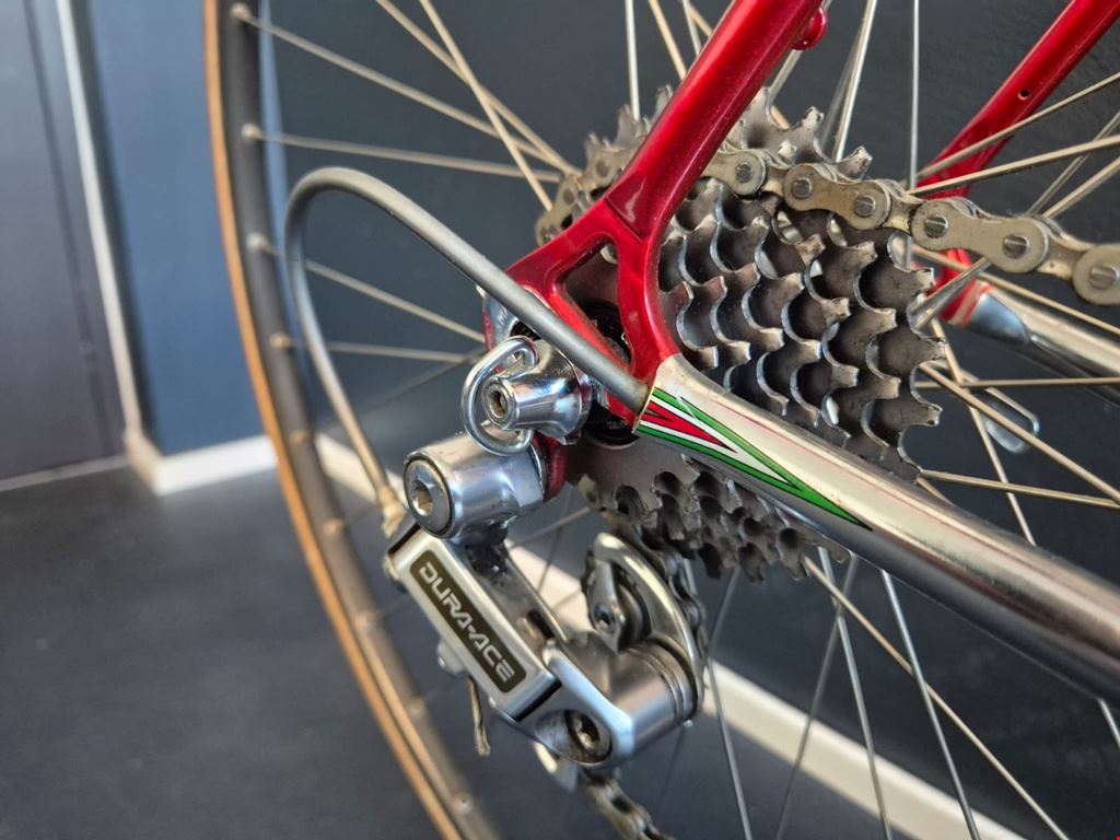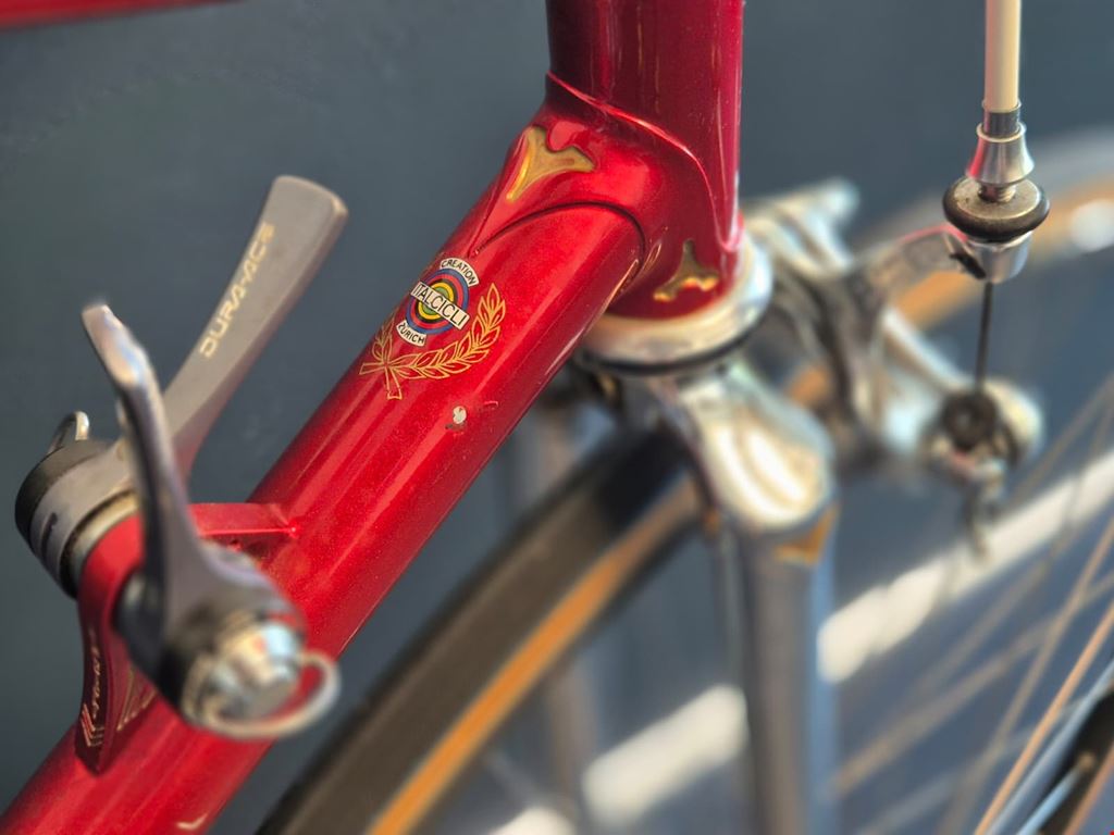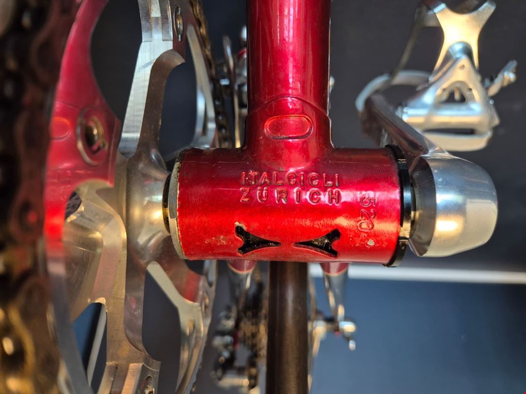 - Wunderschönes, seltenes custom-lackiertes Vintage Rennrad von Magni Italcicli mit Details wie innenverlegten Schalt- und Bremszügen, lederbezogenem Cinelli-Lenker oder liebevoll lackierten kleinen Italien-Flaggen auf dem Rahmen Rahmen: Magni Italcicli Systems (ICS) mit Custom Lackierung, innenverlegten Schalt- und Bremszügen, aus gemufften Stahlrohren Rahmengrösse: 54cm Jahrgang: ca. 1987/88 Lenker: Cinelli mit lederbezogenen Griffen Vorbau: Shimano Dura Ace Felgen: Mavic GP4 für Collé/Schlauchreifen Naben: Shimano Dura Ace Kurbeln & Pedale: Dura Ace mit ICS Körbchen Schaltung, Umwerfer, Schaltwerk: Shimano Dura Ace RD-7400 Serie Kettenblätter und Kassette: Shimano Dura Ace 2x7 Sattel: Turbo Sattelstütze: Campagnolo Gewicht: ca. 9.9kg Hervorragender Zustand und wenig gebraucht. Preis verhandelbar.