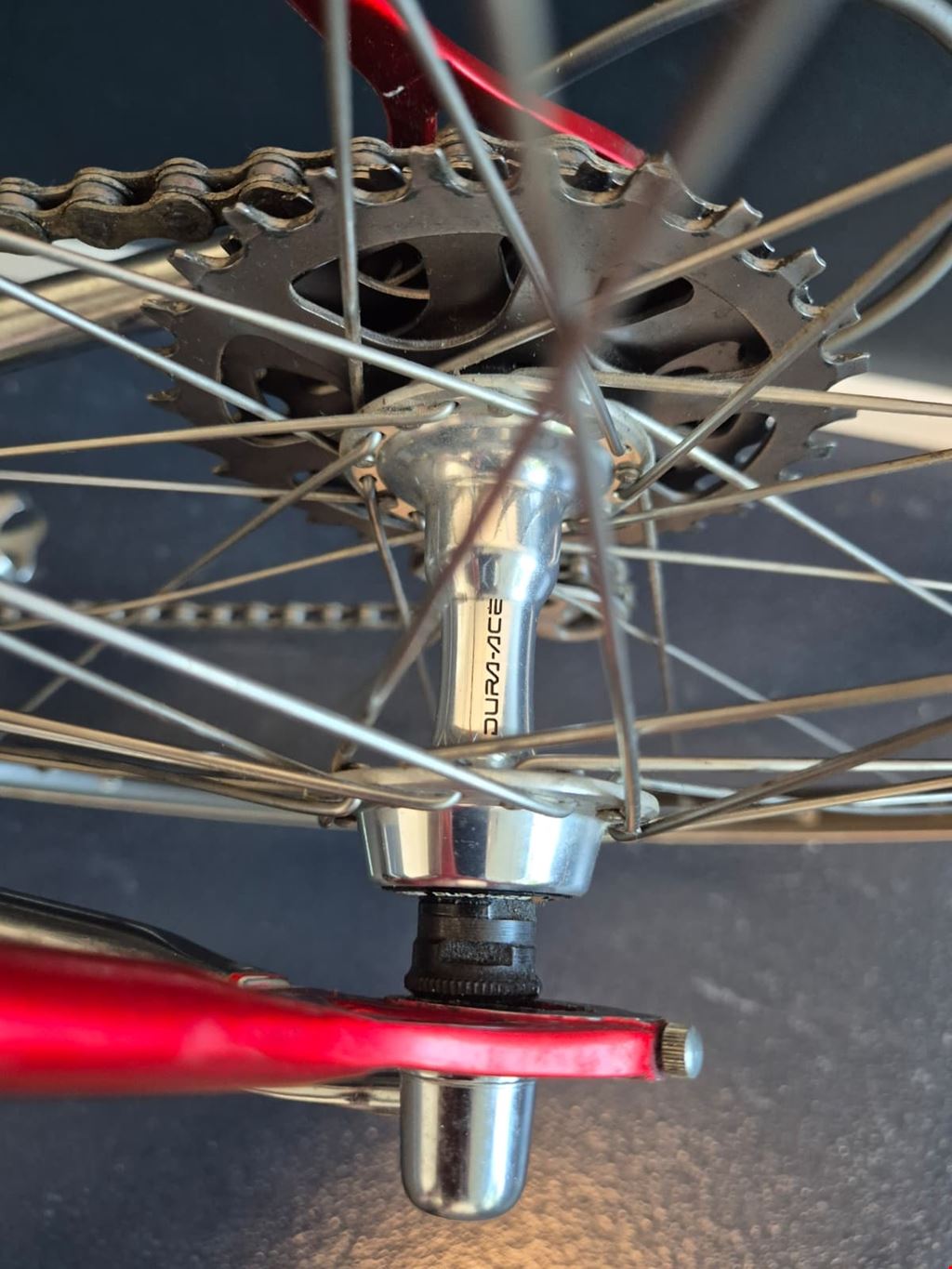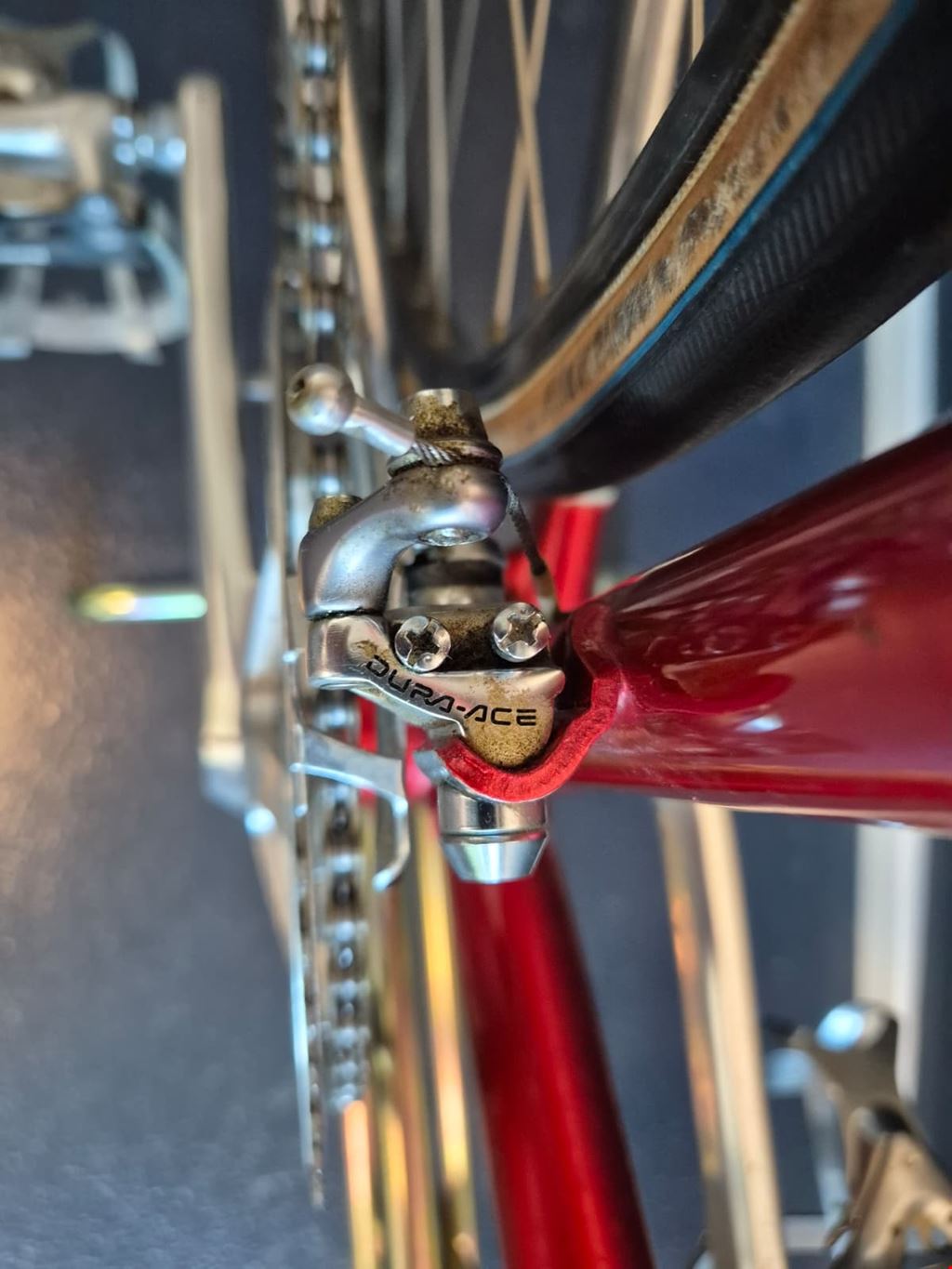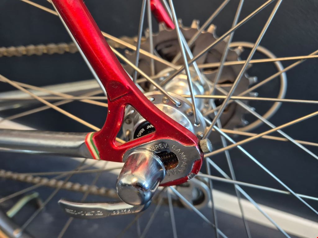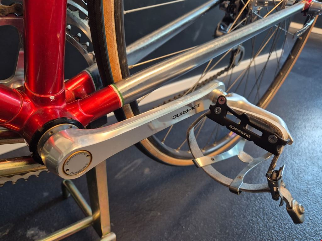 - Wunderschönes, seltenes custom-lackiertes Vintage Rennrad von Magni Italcicli mit Details wie innenverlegten Schalt- und Bremszügen, lederbezogenem Cinelli-Lenker oder liebevoll lackierten kleinen Italien-Flaggen auf dem Rahmen Rahmen: Magni Italcicli Systems (ICS) mit Custom Lackierung, innenverlegten Schalt- und Bremszügen, aus gemufften Stahlrohren Rahmengrösse: 54cm Jahrgang: ca. 1987/88 Lenker: Cinelli mit lederbezogenen Griffen Vorbau: Shimano Dura Ace Felgen: Mavic GP4 für Collé/Schlauchreifen Naben: Shimano Dura Ace Kurbeln & Pedale: Dura Ace mit ICS Körbchen Schaltung, Umwerfer, Schaltwerk: Shimano Dura Ace RD-7400 Serie Kettenblätter und Kassette: Shimano Dura Ace 2x7 Sattel: Turbo Sattelstütze: Campagnolo Gewicht: ca. 9.9kg Hervorragender Zustand und wenig gebraucht. Preis verhandelbar.