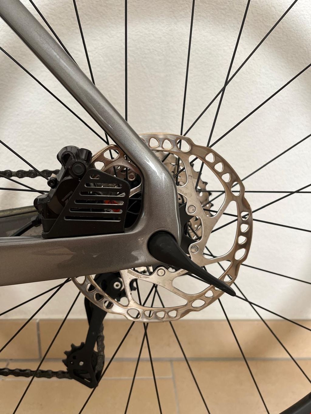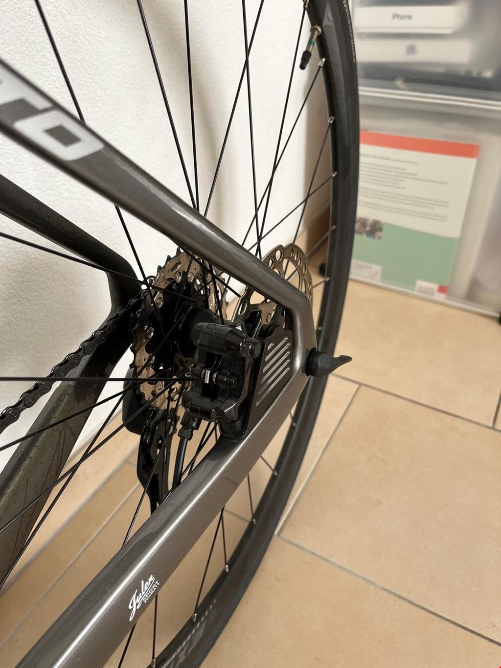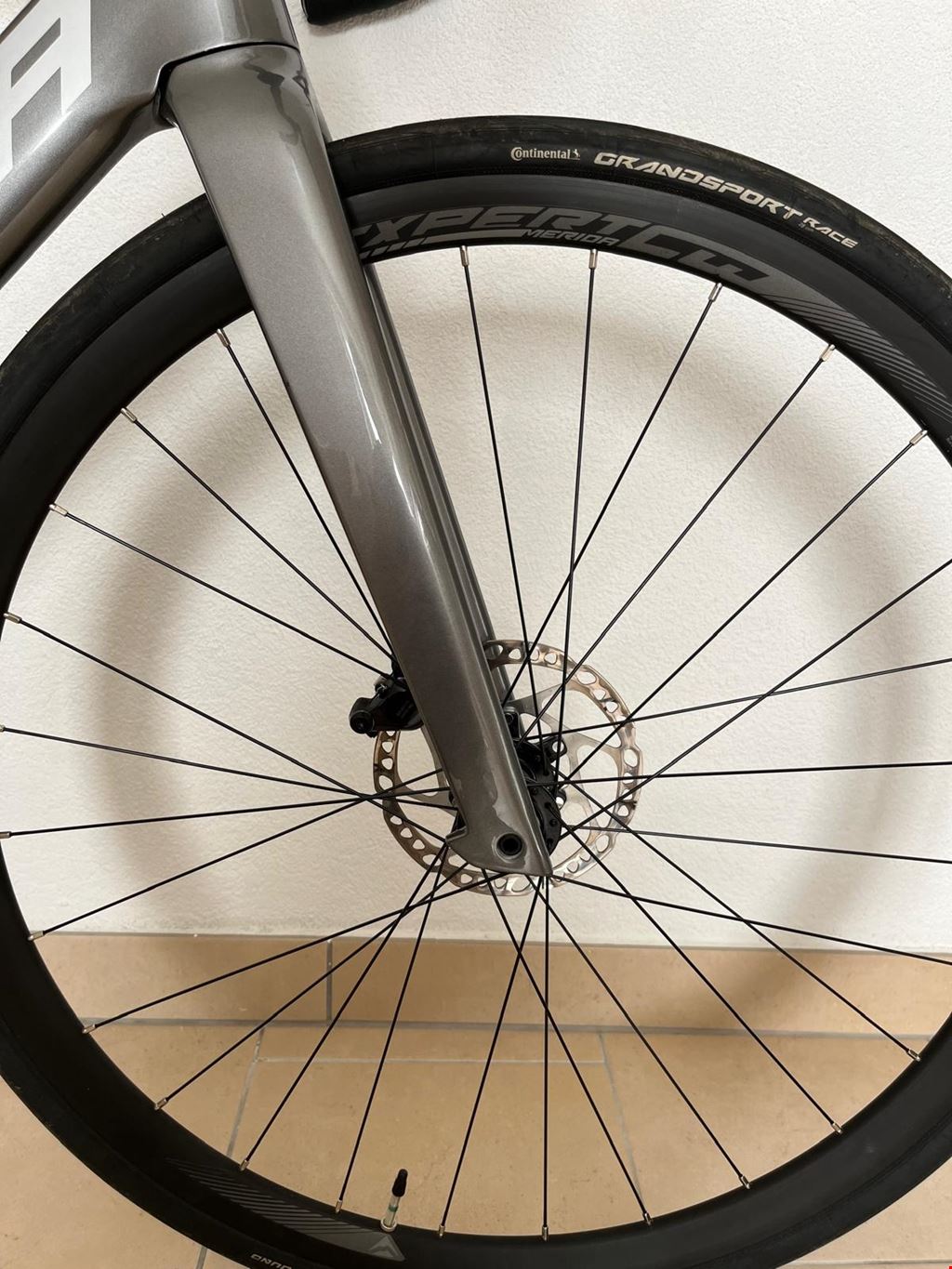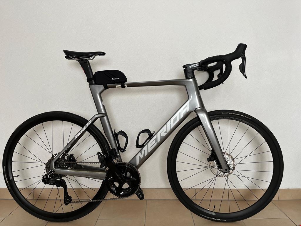 - The bike is (like new). I've only ridden the bike maybe 10 times. Selling it because I don't use it enough. Product technical specifications: Frame: REACTO CF3 IV; MAT carbon; 700x30C max. WHS; 100x12/ 142x12 AST; BB86,5 BBR Fork: REACTO CF3 IV DISC; MAT carbon; 700x30C max. WHS Front brakes: Shimano 105; Hydraulic disc Rear brakes: Shimano 105; Hydraulic disc Brake discs: Front: Shimano RT64; 160mm / Rear: Shimano RT64; 160mm Chain: Shimano CN-M6100-12 Crankset: Shimano 105; FCR7100, 52-36 ATC, crank length: 165 mm-XXS, 170 mm-XS, 172.5 mm-S/M, 175 mm-L/XL Bottom bracket: SM-BB72-41B, Pressfit 86.5 Front derailleur: Shimano 105 Di2 Rear derailleur: Shimano 105 Di2 Cassette: Shimano CS-R7101; 11-34 ATC; 12 GER Grips: MERIDA ROAD Expert Handlebar: MERIDA EXPERT CW; MAT aluminium; 380mm (XXS); 400mm (XS); 420mm (S/M/L), 440 (XL) Stem: FSA SMR ACR; MAT aluminium; -6 ASD, 90 mm-XXS/XS, 100 mm-S, 110 mm-M, 120 mm-L/XL Headset: FSA ACR Front hub: JY D981SB; 100x12 WHF; 28 SPH; Centerlock Rear hub: JY D872SB; 12-142 WHR; 28 SPH; Centerlock Rims: MERIDA EXPERT CW; 19 IWR; 30 HRI; MAT aluminium; Tubeless ready (tubeless tape and valves not included) Saddle: MERIDA EXPERT SL; V-mount; incl. MERIDA minitool Seat post clamp: MERIDA REACTO Aero Seat post: MERIDA Team CW; Aero shape; 15 SSB; Carbon Front shifter: Shimano 105 disc Di2 Rear shifter: Shimano 105 disc Di2 Spokes: Double Butted Black stainless Front tire: Continental Grand Sport Race; 700x28C; fold Rear tire: Continental Grand Sport Race; 700x28C; fold Bell: Nuvo Alloy