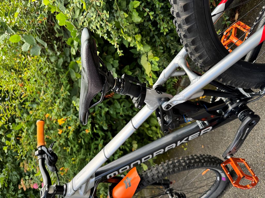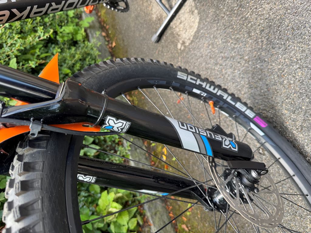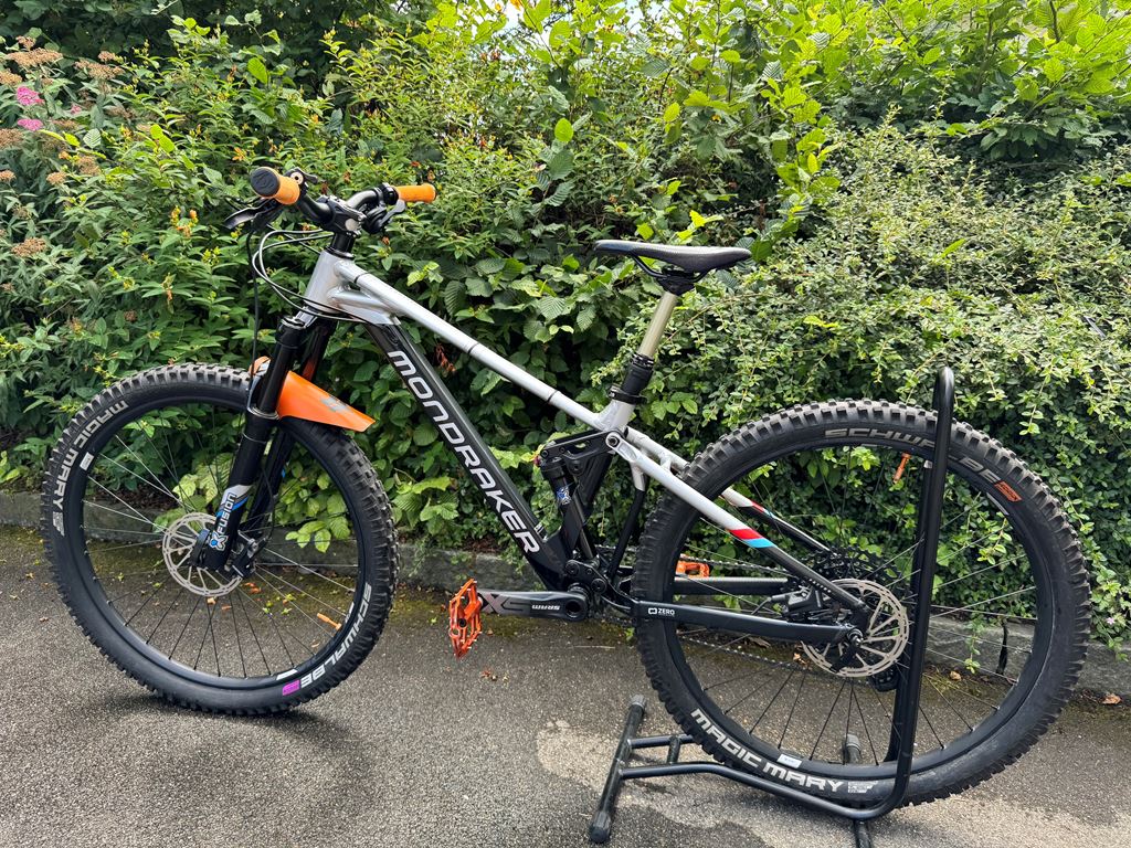 - Technische Daten im Überblick: * Rahmen: 6061 Aluminium Stealth Evo, Zero Suspension System, 120mm Federweg * Gabel: X-Fusion Velvet RL2, 120mm, Luftfederung, Lockout, Zugstufe * Dämpfer: X-Fusion 02PRO R, abgestimmt mit A-Tune Druckstufe * Antrieb: SRAM SX Eagle 1x12 * Bremsen: SRAM Level mit 160mm Centerline Scheiben * Reifen: Schwalbe Magic Mary 26x2.4 - tubeless aufgebaut * Dropper Post: Absenkbare LEV-Sattelstütze mit Remote * Gewicht: 13.6 kg * Grösse: 350 mm Warum dieses Bike überzeugt: Das Mondraker Factor 26 ist mehr als nur ein Einsteiger-Fully. Es ist ein echtes Trailbike im Mini-Format. Top-Geometrie, hochwertige Parts und ein ausgewogenes Fahrverhalten machen es zum perfekten Begleiter für junge Fahrer, die ernsthaft Mountainbiken wollen. Das Bike wurde regelmässig gewartet und ist in einem sehr guten technischen Zustand. Leichte Gebrauchsspuren sind vorhanden, genau das, was ein Bike bekommt, wenn es mit Spass und Leidenschaft gefahren wird. Warum wir es verkaufen: KIND (😉) hat mit diesem Bike die Trails für sich entdeckt, es war sein Einstieg ins echte Mountainbiken. Jetzt ist er rausgewachsen, und das Bike darf den nächsten jungen Rider begeistern. Wer ein gepflegtes, hochwertiges Kinder-Fully sucht, das sofort einsatzbereit ist, wird hier fündig. Besichtigung und Probefahrt sind nach Absprache möglich. Standort: 8583 Sulgen oder 8580 Biessenhofen