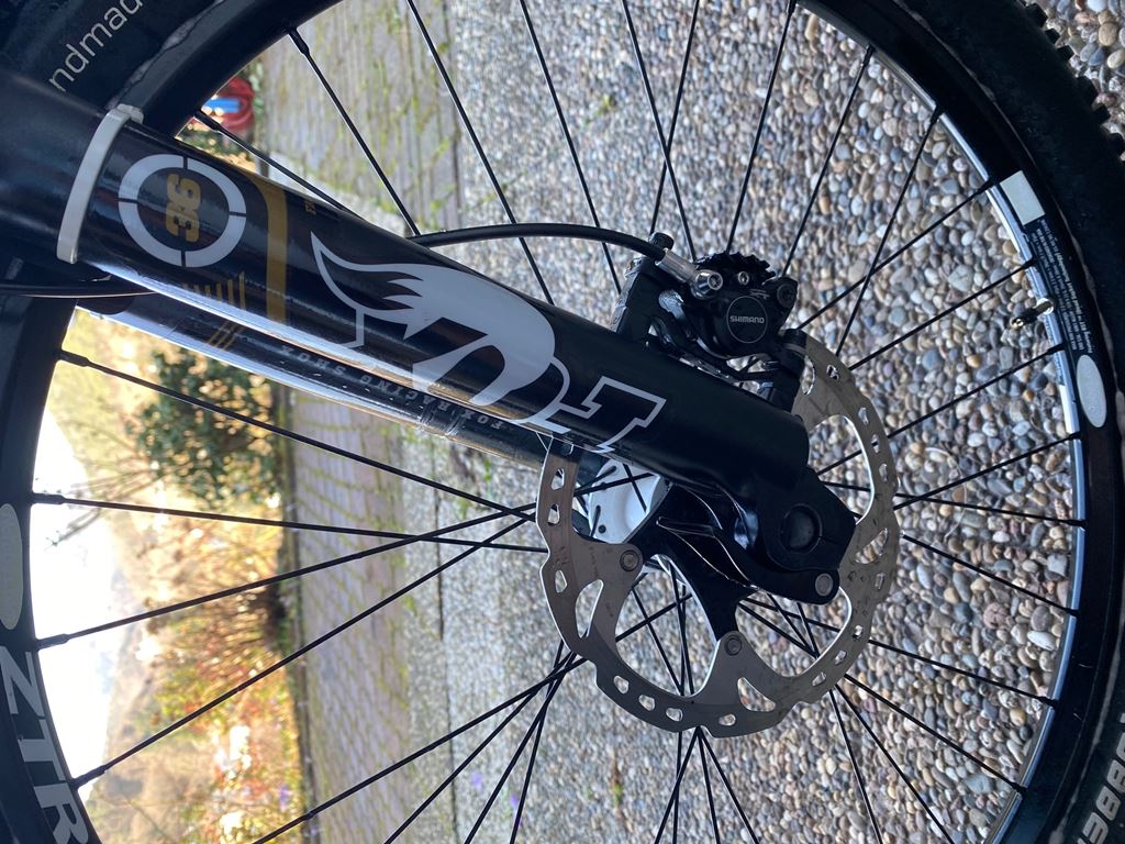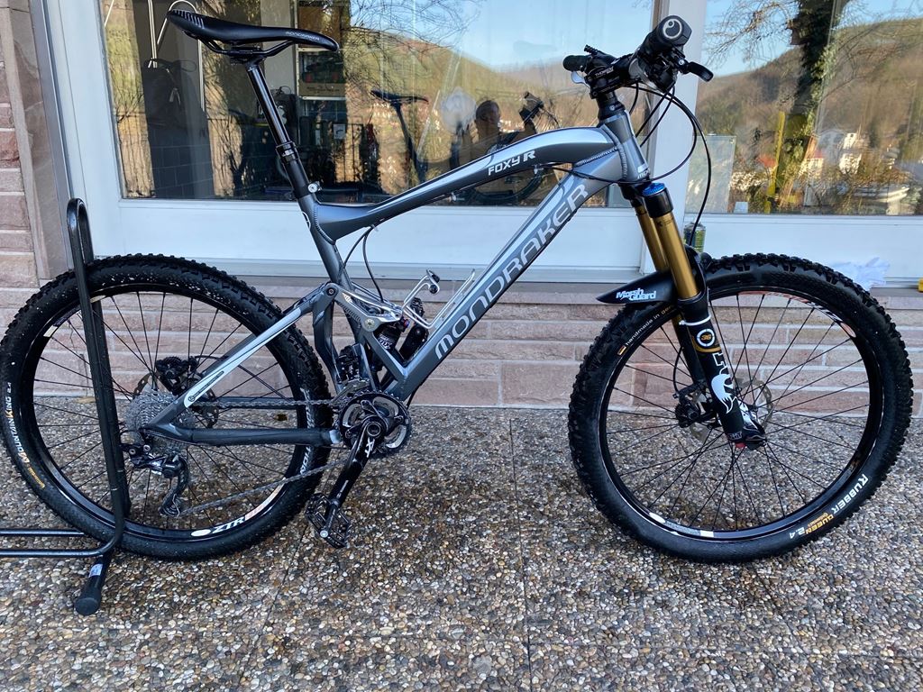 - Zum Verkauf steht mein Mondraker Foxy im Top Aufbau. Jedes Teil wurde mit Bedacht ausgewählt. Es hat eine Laufleistung von ca. 2000km. Das Bike ist ein wunderbarer Allrounder. Es fährt sich sehr laufruhig, geht messerscharf um die Kurve und bietet sehr gute Klettereigenschaften. Durch den edlen und leichten Laufradsatz beschleunigt es mühelos. Die Gabel ist fast neu und erst ca. 500Km gelaufen. Durch die Fox 36 hat sich der Lenkwinkel auf ca 66,5-67° abgeflacht und der Radstand verlängert. Die Kurbel hat einige Kratzer ansonsten befindet sich das Bike in einem sehr guten Zustand. Ich empfehle allerdings einen neuen Hinterreifen aufzuziehen und die Dichtmilch auch am Vorderrad zu erneuern. Es stand die letzten 5 Jahre im Keller und freut sich auf einen neuen Besitzer. Partliste: Rahmen: Foxy R 2012 Gr. L 26 Zoll, 140mm Federweg Dämpfer: Fox Float RP2 XV Boost Valve 200×57mm Gabel: Fox 36 Talas (absenkbar) RC2 Fit Kashima 160mm (2013) Gerade mal 500km gelaufen! Komplette Shimano XT Austattung inkl. Schreibenbremsen (VR/HR 180mm Scheiben) vorne 2 Fach, hinten 10 fach, Laufrad: Tune King/Kong, Notubes ZTR Flow, Sapim CX- Ray Speichen (1450gr). VR. Continental Rubber Queen 2,4; HR: Continental Mountainking 2,4 (tubeless montiert, müssen gewechselt werden) Sattestütze: Rock Shox Reverb Stealth Vorbau: Thomson X4 50mm Lenker: NC 17 318MR S-Pro (gekürzt auf 760mm) Pedale: NC 17 Sudpin III Das Bike steht gegenwärtig in Deutschland. Bei seriösen Interesse kann ich es in die Schweiz bringen. Das Bike soll nach Möglichkeit persönlich abgeholt werden. Keine Garantie und Gewährleistung meinerseits!