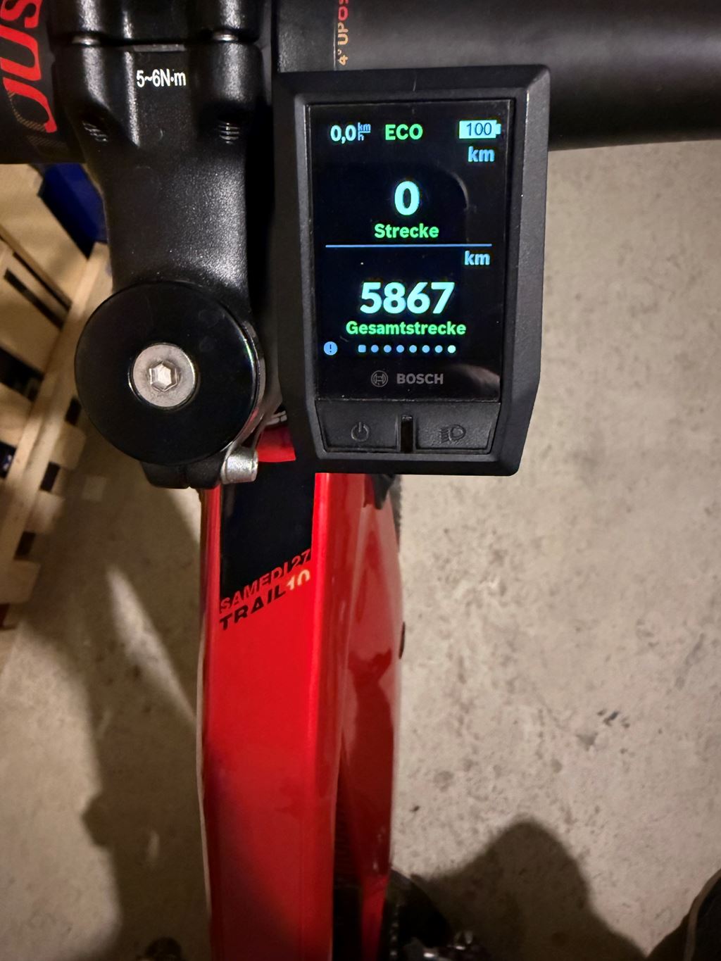 - Beschreibung Technische Daten kleiner Auszug ohne Gewähr: AUSSTATTUNG Motor Bosch Performance Line CX 75Nm Akku Bosch PowerTube 625Wh Display Bosch Kiox Federgabel FOX 34 Factory FIT4 150 mm Dämpfer Moustache Magic Grip Control 150 mm Sattelstütze Moustache Teleskope 100 ? 170 mm Bremsen Shimano XT 4 Kolben vo/hi 203/203 mm Schaltung Shimano XTR 1x12 Vorbau Moustache 3D-forged Alloy 60 mm Lenker Moustache Just Carbon 760 mm Laufradsatz Moustache Just Carbon 27,5" Reifen vorne/hintern Schwalbe EDDI Current TECHNISCHE DATEN Größe L Gewicht 22,77 kg Zul. Gesamtgewicht 150 kg Max. Gewicht Fahrer/Equipment 127 kg für weitere Daten einfach mal google Fragen. Velo befindet sich in einem sehr guten Zustand. Reifen vorne vor kurzem ersetzt. Antriebskomponenten Kette,Kasette,Ritzel und Bremsscheibe Hinten + Bremsbeläge Hinten am 25.06. 2025 bei km Stand 5867km ersetzt/neu . Bremsscheibe und Kolben hinten ersetzt von 180mm auf 203mm, Kilometerstand 5867km am 25.06.2025 siehe Bild, da es noch bewegt wird können noch ein paar km dazu kommen. Bilder von der neuen Kasette, Kette und Ritzel beigefügt. Einen neuen Pneu fürs Hinterrad gibt’s dazu. Kaufbeleg zwecks Herkunftsnachweis vorhanden. Der Orginale Sattel sowie die Pedale welche bei Auslieferung montiert waren werden wieder zurück montiert (Auslieferungszustand). Bezahlung: Bei Übergabe via TWINT keine Garantie, Umtausch , Gewährleistung sowie Rückgaberecht da Verkauf von Privat.